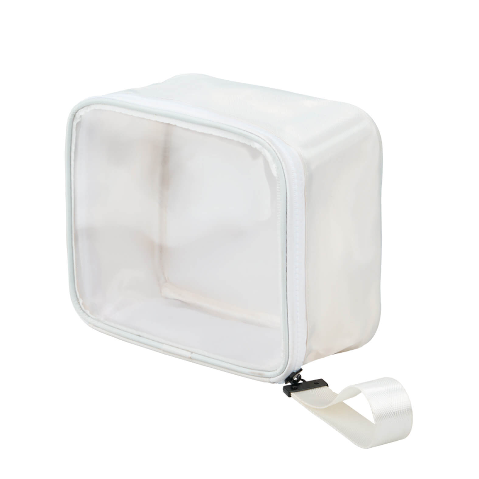 JANE Cosmetiquera rectangular de plástico con frente transparente, cierre y asa.