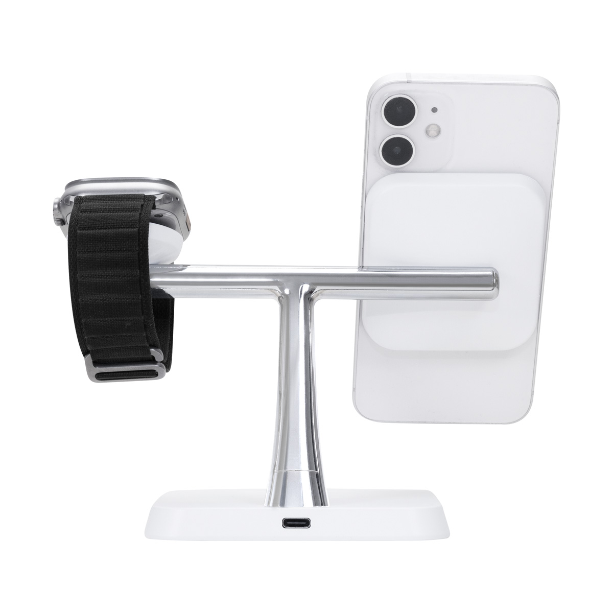 MULTICARGADOR INALÁMBRICO AYRTON - Estación de carga inalámbrica 3 en 1. Permite la carga simultanea de smartphone, earbuds y reloj inteligente. Velocidad de carga de 15 W / 5W / 3W. Incluye cable de 1m con conector tipo C y caja individual. Compatible con dispositivos que cuenten con tecnología de carga inalámbrica.