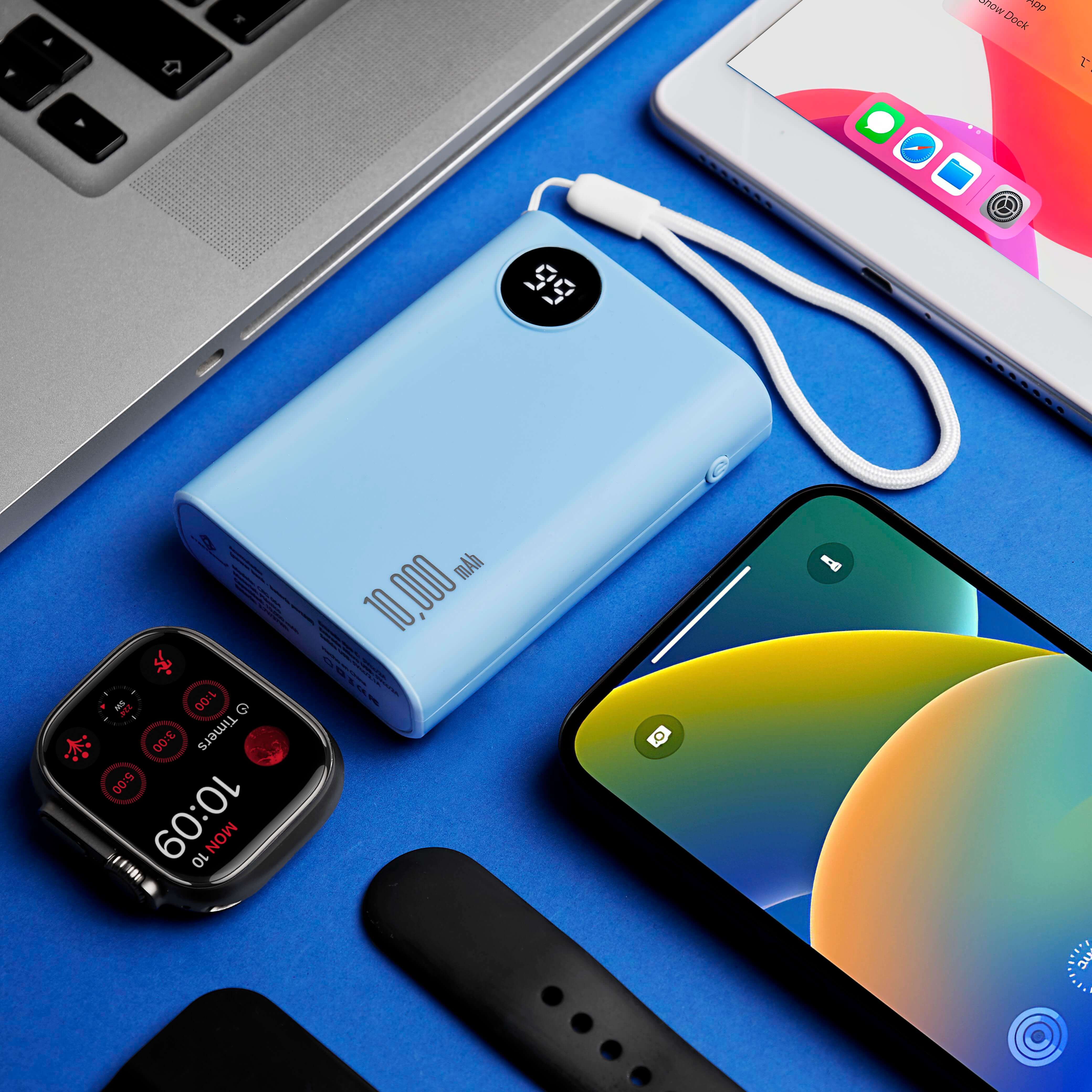 POWER BANK MUSK - Batería auxiliar para smartphone, capacidad 10,000 mAh. Contiene 2 puertos de salida, USB para carga de dispositivos y 2 puertos de entrada, micro USB y tipo C exclusivos para recarga de la batería (no carga dispositivos) y . Incluye display indicador de carga, cable con conector tipo C y caja individual.