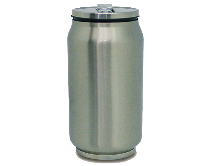 NERIS - Termo para sublimación en forma de lata, es de acero inoxidable con doble pared insulado al alto vacío, mantiene las bebidas calientes por 12 horas y frías por 24 horas. Cuenta con tapa hermética de rosca y boquilla plegable para beber. CAP. 300 ml. (10 OZ). Presentación: caja individual.