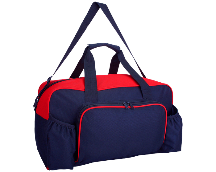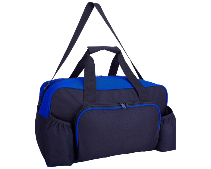 SPORT - Maleta deportiva, cuenta con 2 compartimentos, bolsa exterior de cierre al frente, asa central ajustable, asas laterales, base de cartón grueso de soporte y bolsilos laterales con resorte. Cuenta con 4 pequeños soportes de plástico externos en la parte de abajo, para evitar que se maltrate al colocarla en el suelo.
