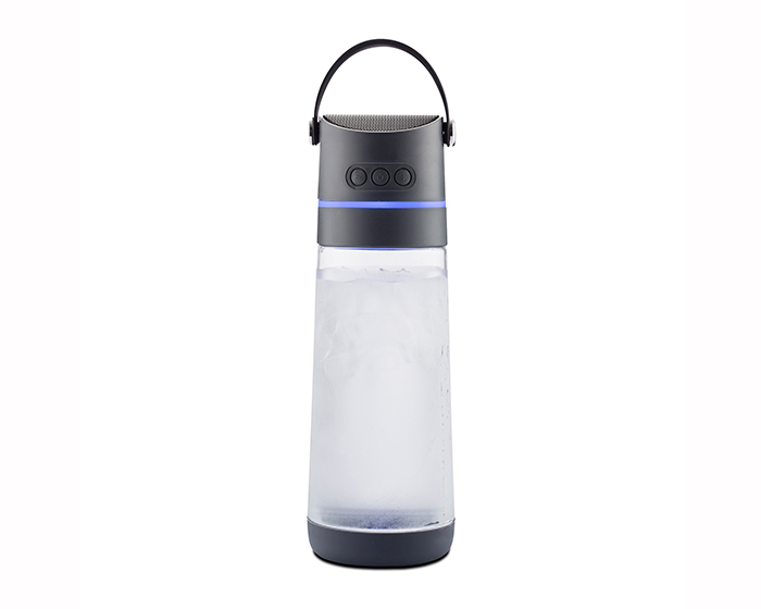 SOUNDTEK - Cilindro con bocina Bluetooth. El cuerpo de cilindro es de Tritan, libre de BPA, para un consumo saludable, con una franja que se ilumina en color azul y blanco al estar encendido. Cuenta con altavoz inalámbrico de 3w. Permite contestar llamadas, tiene integrado un sistema anti goteo y es fácil de transportar. Perfecto para uso en interiores o para actividades deportivas y al aire libre. Incluye cable de carga USB. CAP. 650 ml. Presentación: caja en color blanco.