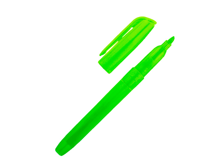 MARK - Marcador de plástico fosforescente de práctico diseño, con tapa y cuerpo que indican el color de la tinta.