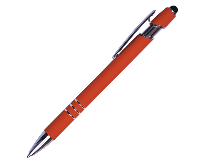 LANCE - Bolígrafo de aluminio con recubrimiento de goma. Con detalles y clip metálico. Punta touch y mecanismo de click.