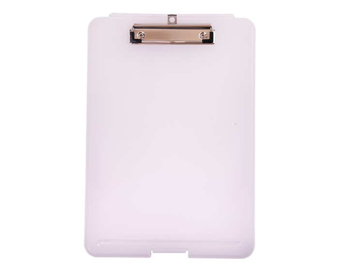 SECRET - Porta documentos de plástico traslúcido con clip exterior metálico para sujetar hojas.