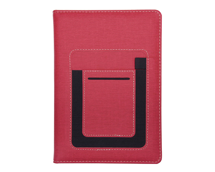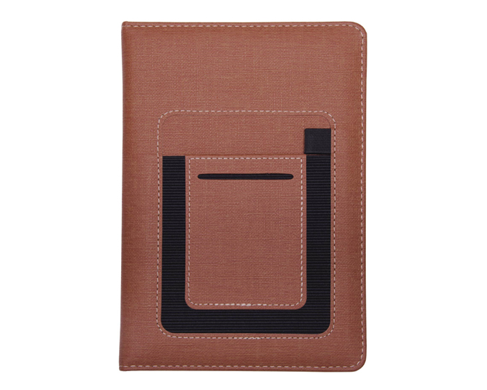MILÁN - Libreta personal de 80 hojas (160 páginas) con cubierta de curpiel texturizada. Contiene 2 compartimentos uno para tarjetas y otro para celular o notas y banda elástica para bolígrafo.