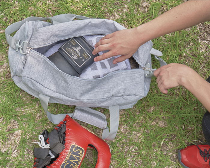 DONOVAN - Maleta deportiva con tejido texturizado, cuenta con doble cierre en la cubierta principal, interior con forro cosido, compartimento frontal con textura y cierre, compartimento lateral con cierre y otro compartimento con cierre para guardar calzado, 2 asas con broche acolchado y correa ajustable para transportar.