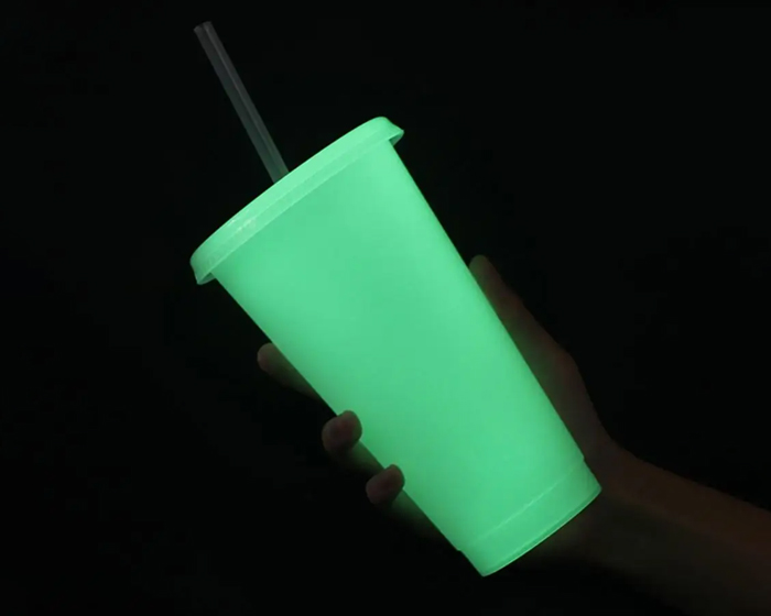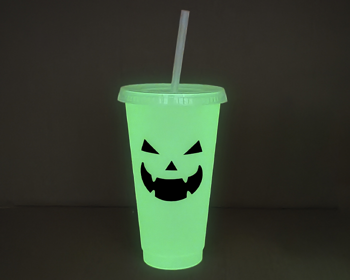 PHANTOM - Vaso de plástico transparente, que brilla en la obscuridad, cuenta con tapa a presión y popote. CAP. 700 ml. *BPA FREE.