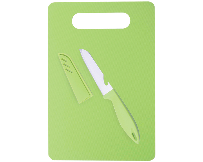 MATERIAL: Cuchillo: Acero Inoxidable // Tabla: Plástico PP MEDIDAS: 20 x 30 cm IMPRESION: TM SE MED. EMPAQUE: 42 x 31 x 26 cm PESO EMPAQUE: 12 kg PIEZAS EMPAQUE: 50