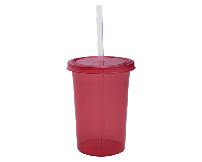 OLAS - Vaso de plástico con tapa a presión y popote. La tapa cuenta con un diseño que simula olas. CAP. 470 ml. *BPA FREE.