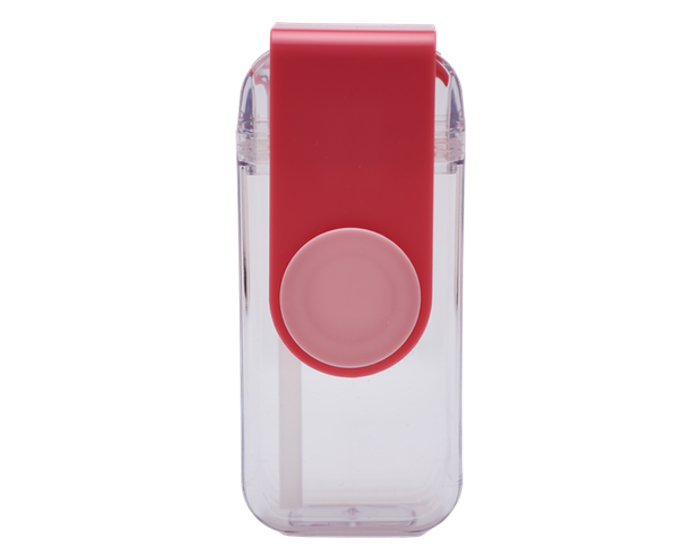 JUICY - Cilindro de plástico transparente con diseño en forma de "cajita para jugo". Cuenta con asa giratoria en color pastel, la cual al deslizarse hacia un lado permite que se expulse el popote. Al regresar el asa a la posición vertical, el popote vuelve a colocarse en su lugar. El popote es de silicón, no tóxico. La tapa sella a presión y cuenta con seguro para líquidos. CAP. 280 ml. Presentación: caja en color blanco.