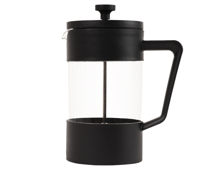 FRANCIS - Cafetera tipo prensa francesa de vidrio borosilicato, con base, tapa y asa de plástico, tiene filtro de acero inoxidable. Cap. 600 ml. Presentación: Caja color blanco.