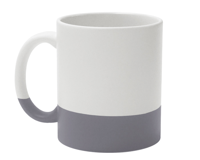 GRES - Tarro blanco mate de arcilla para sublimación, con base y media asa de color. CAP. 325 ml. (11 OZ).