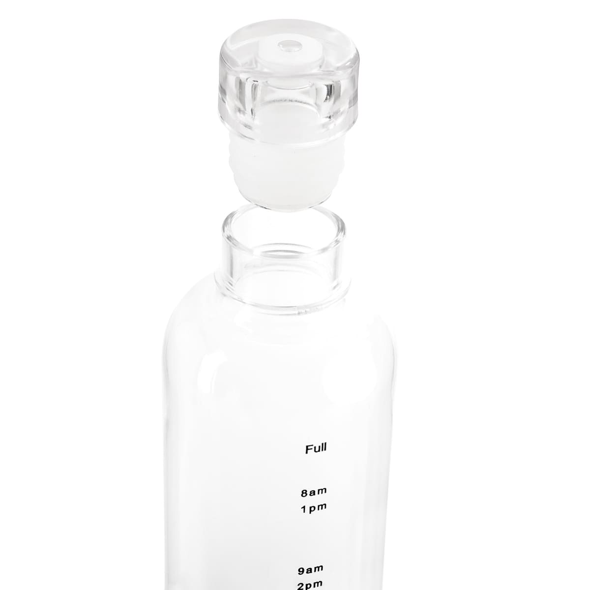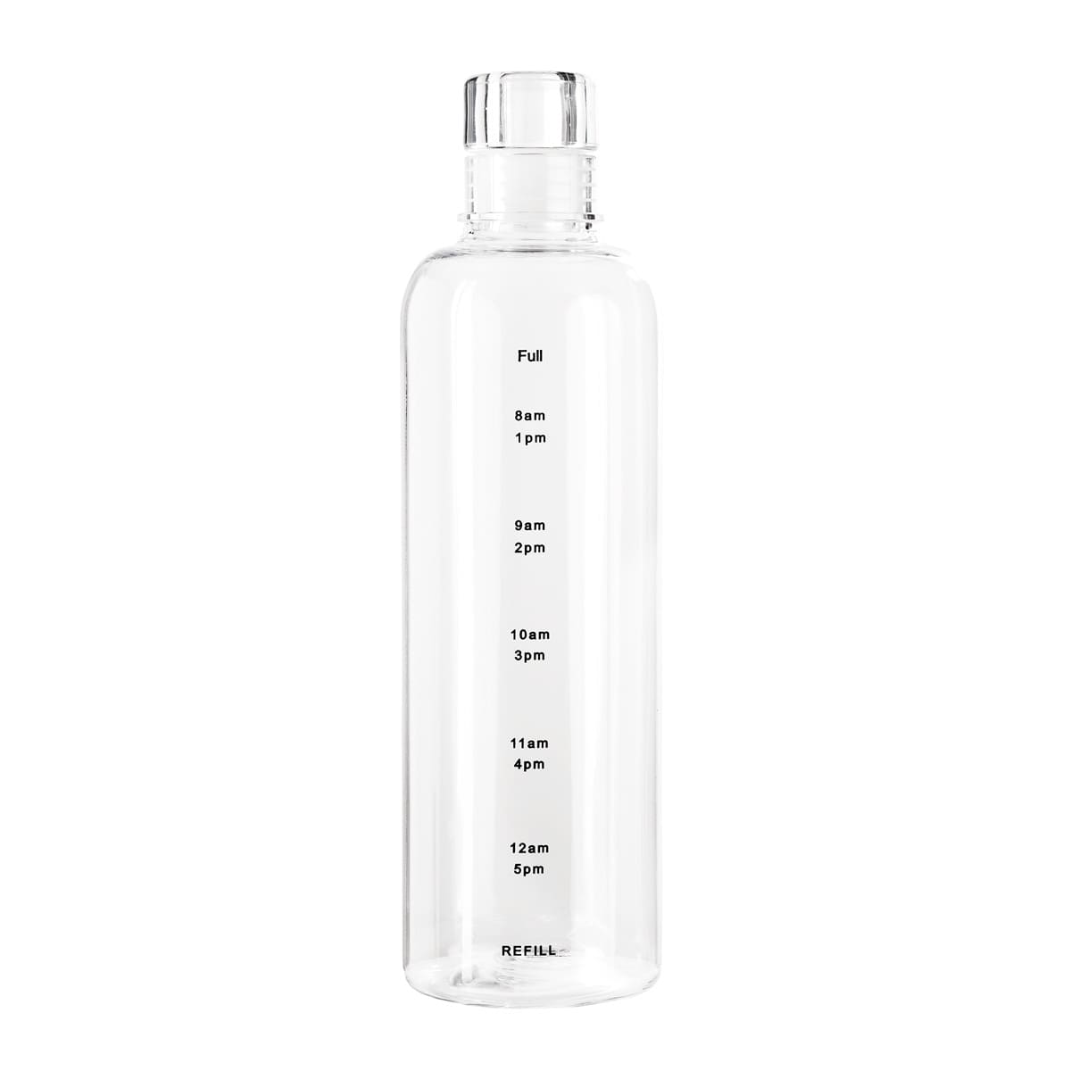 CILINDRO BASTIAN - Tapa con sistema push que evita derrames. Cuerpo transparente con indicador de horas para motivar y controlar tus hábitos de hidratación.
