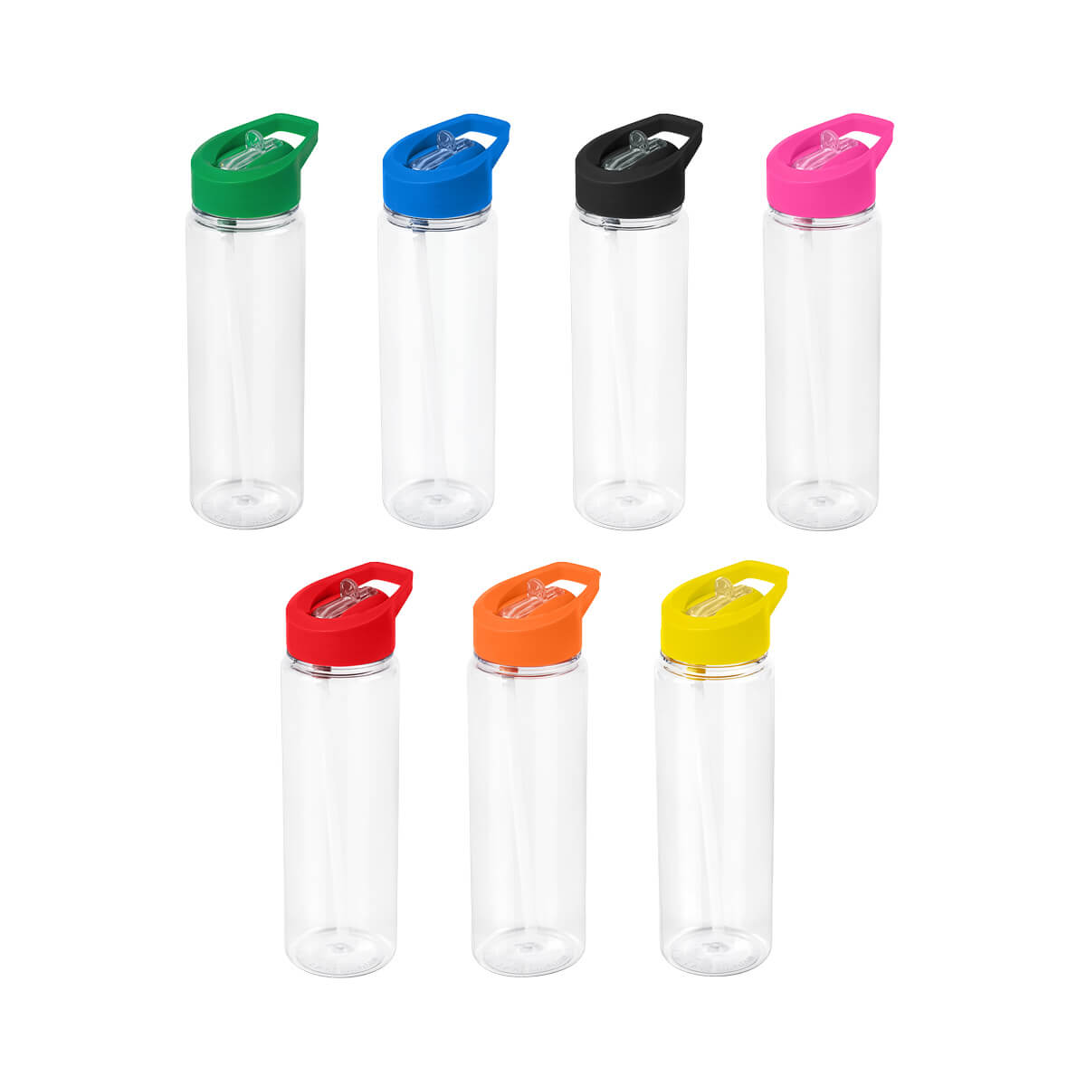 Botella Quito. - Botella transparente de Tritan con tapa de color en forma de co...
