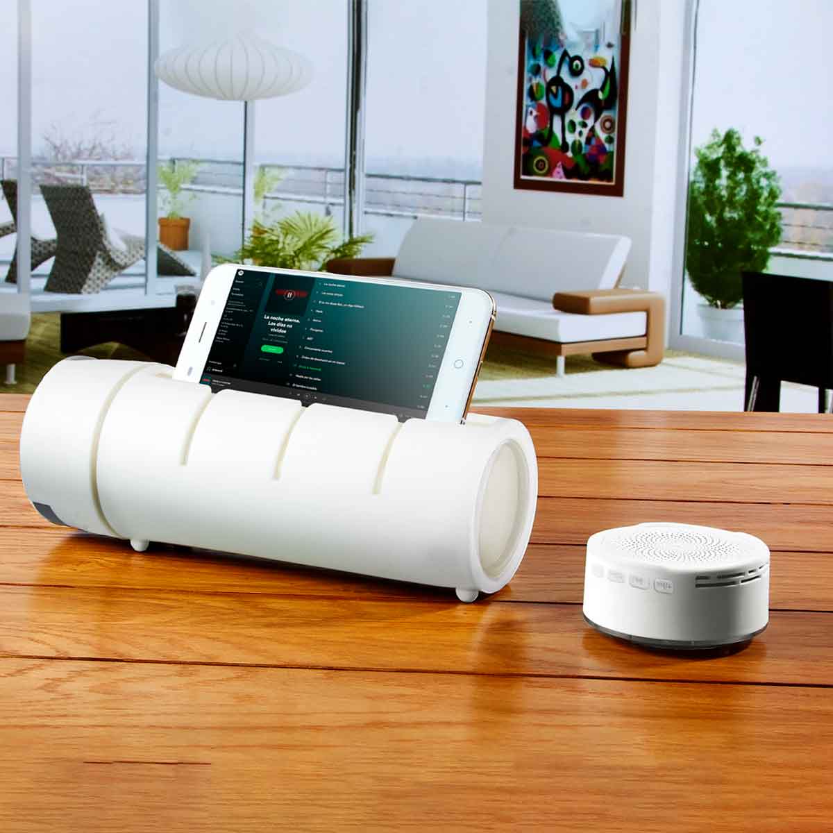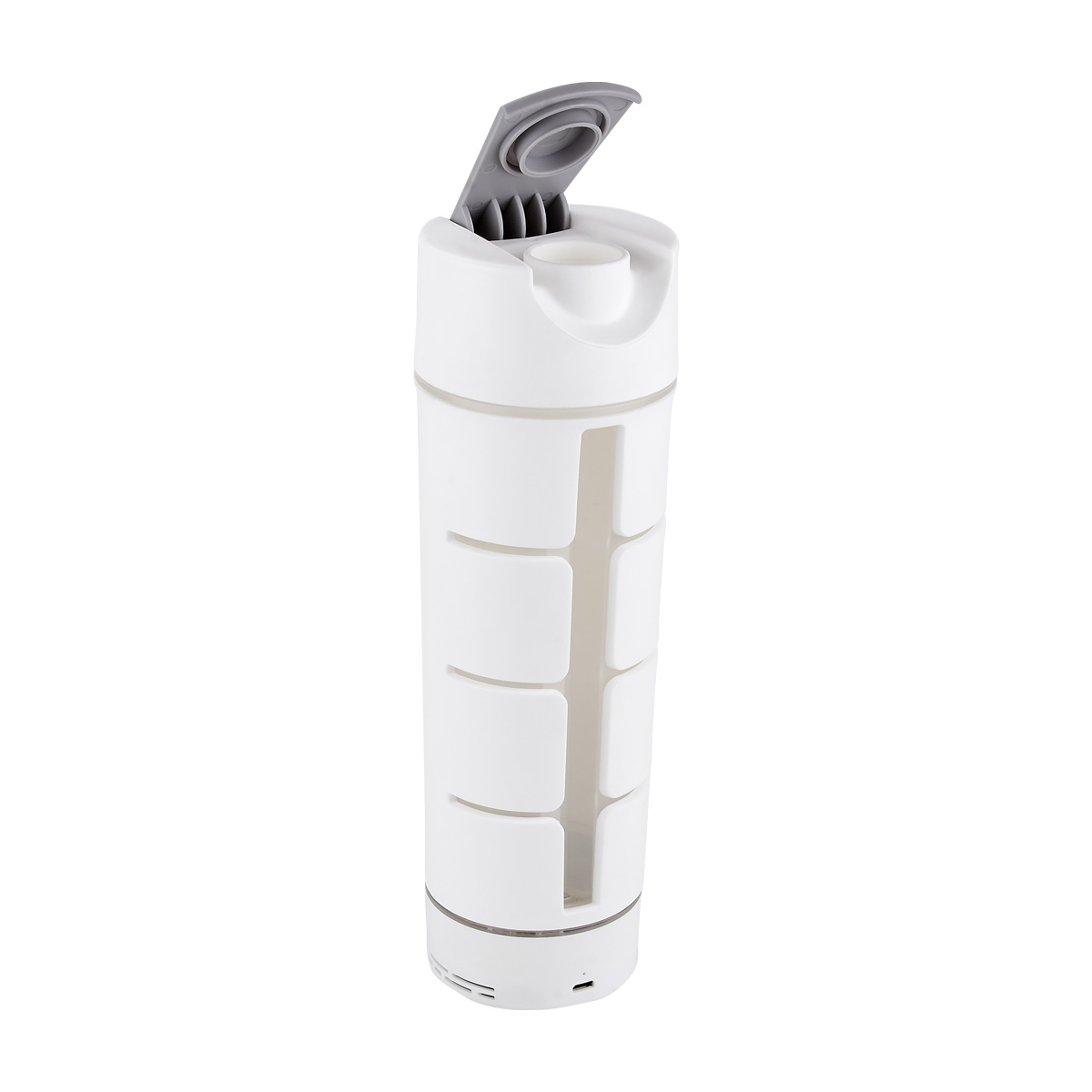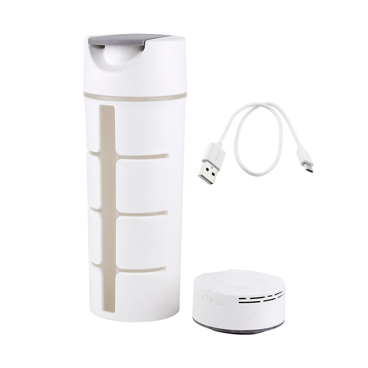 CILINDRO BOCINA SIRET - Cilindro con bocina bluetooth. Función manos libres. Controles integrados de volumen y reproducción de audio. Disparador de cámara al sincronizar con el smartphone. Base para tablet y smartphone. Bocina removible con efectos de luces. Incluye cable USB y batería recargable. Tapa de plástico con cierre de rosca y boquilla, sobretapa con cierre de presión. Caja individual incluida. Este producto por ser últimas piezas puede presentar alguna variación, no se aceptan devoluciones.