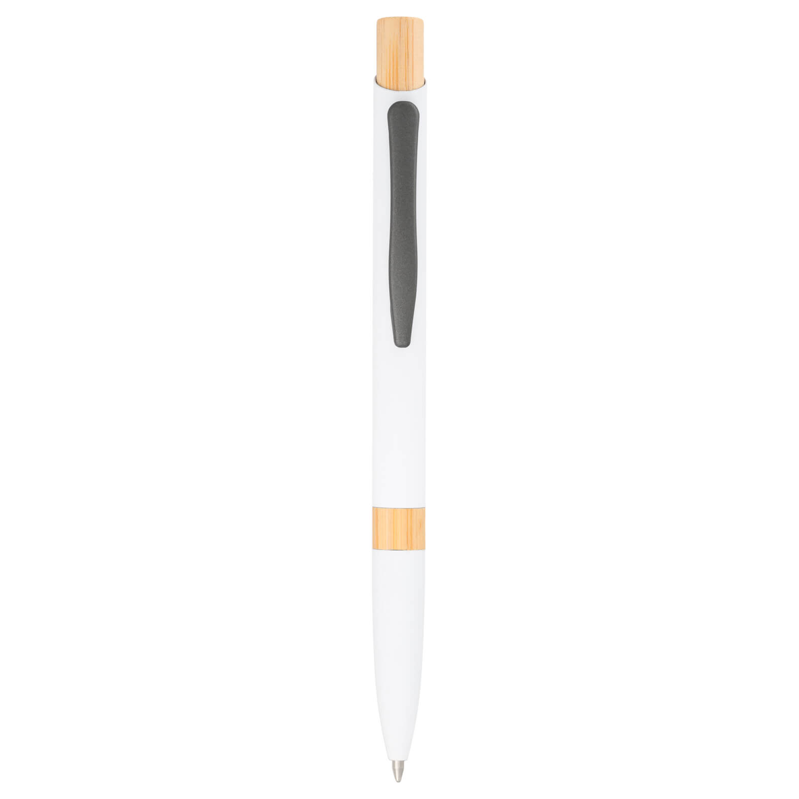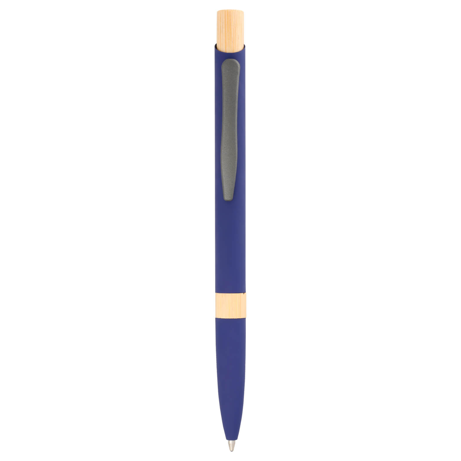 TAAD Bolígrafo metálico con acabado rubber, detalle en bambú, clip y mecanismo de click.