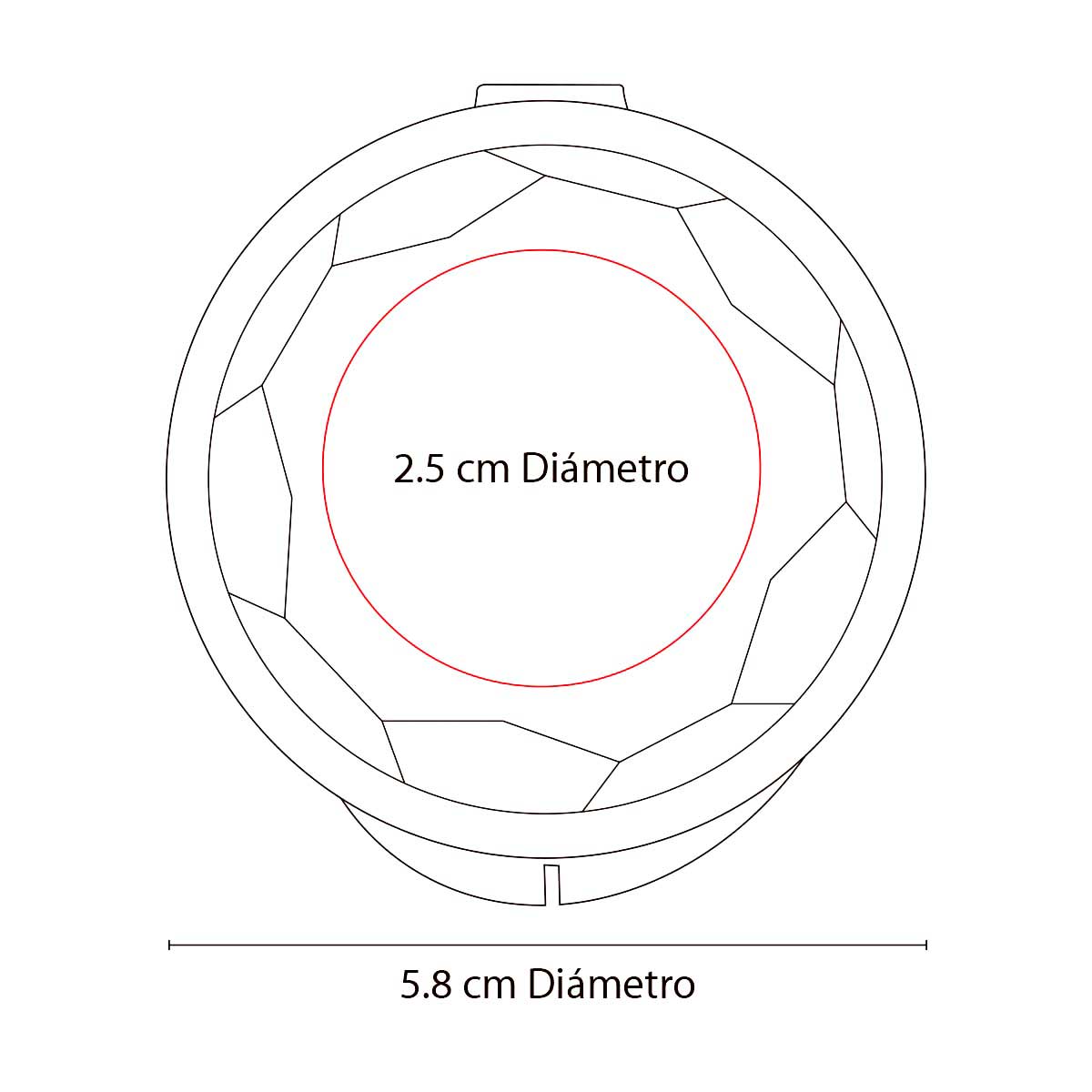 MATERIAL: Plástico MEDIDAS: 5.2 cm Diámetro IMPRESION: Serigrafía / Tampografía MED. EMPAQUE: 32 x 49.5 x 32 cm PESO EMPAQUE: 60 Kg PIEZAS EMPAQUE: 500