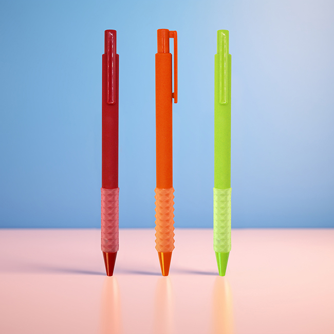 Bolígrafo Homer Grip ergonómico. Acabado en rubber. Mecanismo retráctil.