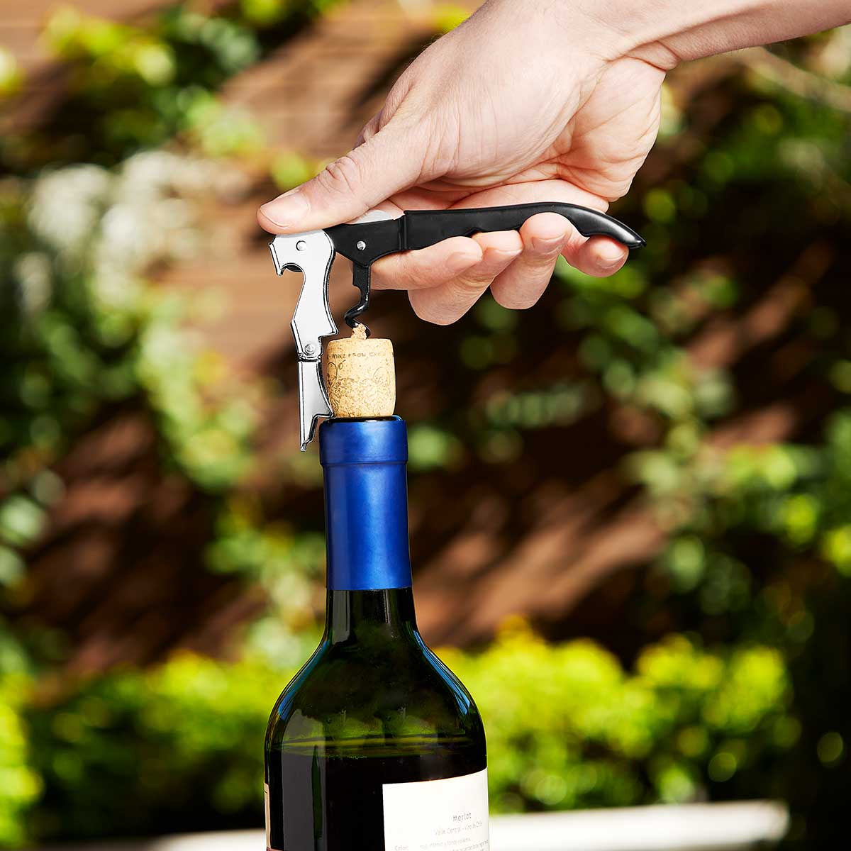 SACACORCHOS SARAP - Sacacorchos de metal con navaja y destapador.