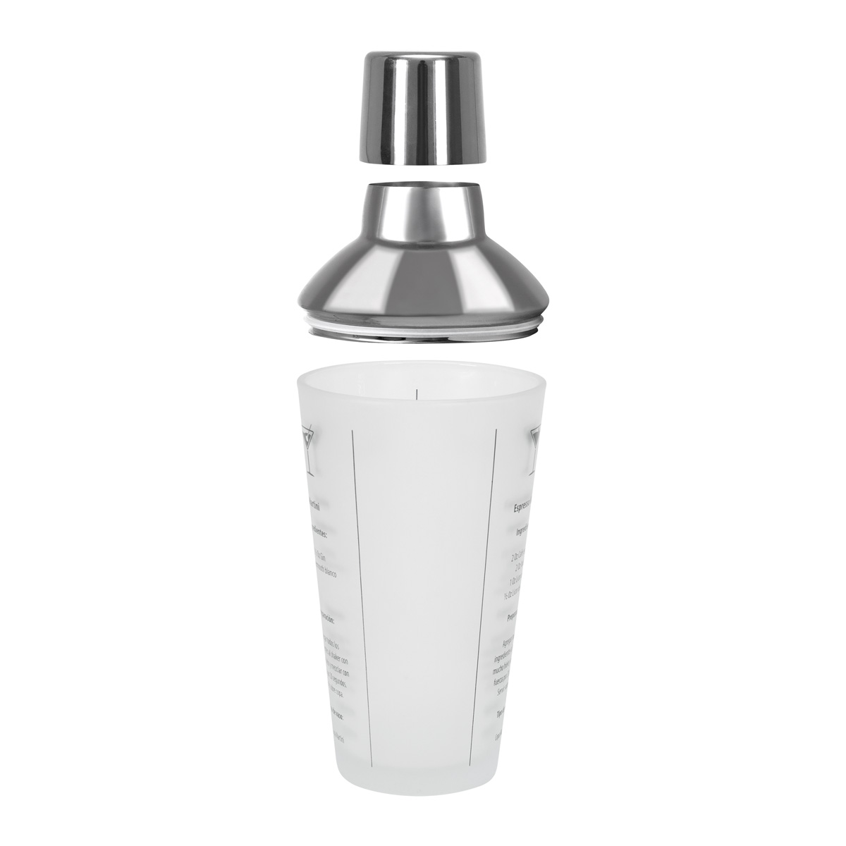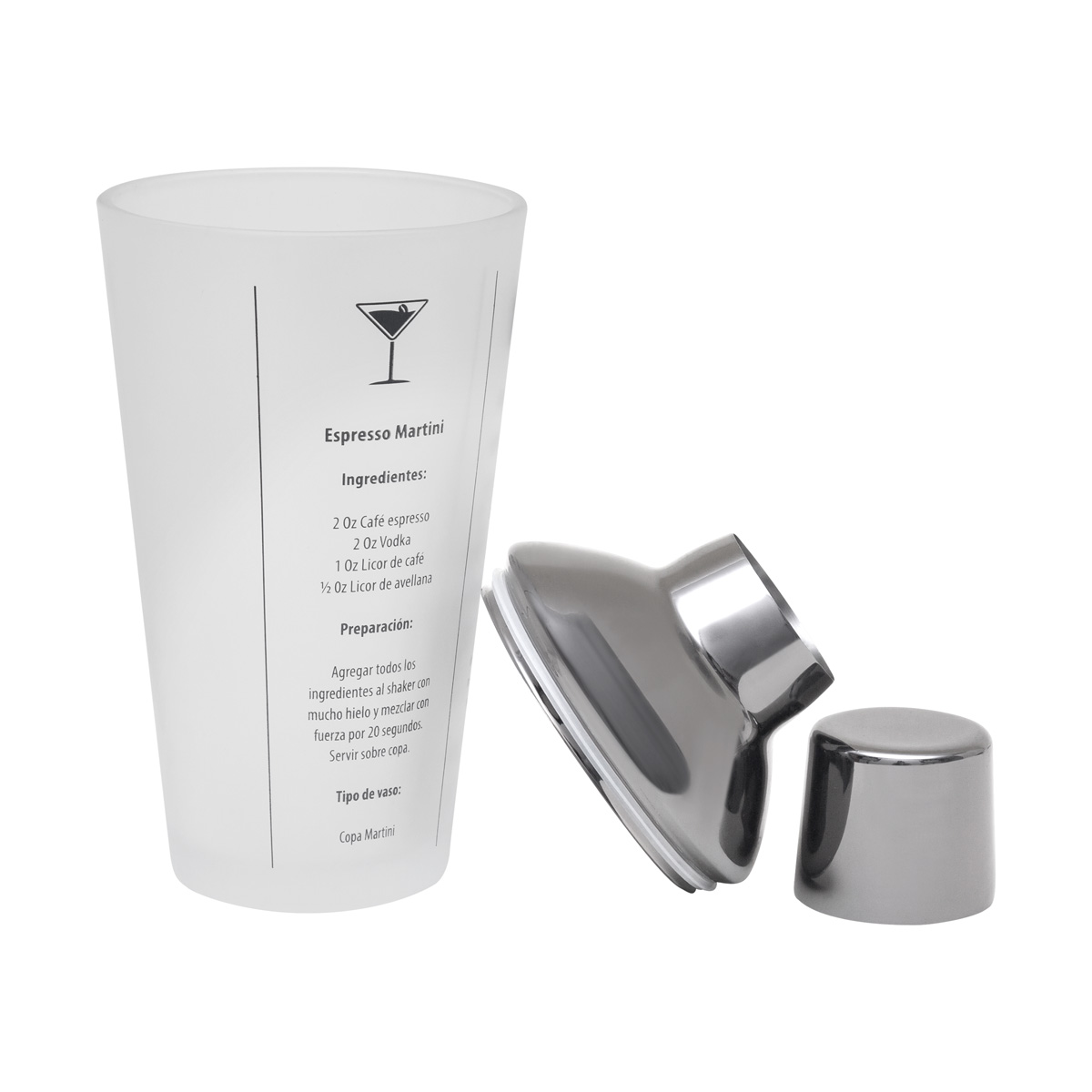 SHAKER METSI - Shaker de cristal con 4 recetas incluidas. Conviértete en el barman perfecto con este shaker diseñado para facilitar la preparación de cócteles profesionales en casa, guiándote paso a paso para crear bebidas como un experto. Podrás preparar un expresso martini, margarita, whisky smash o martini. Incluye caja individual.