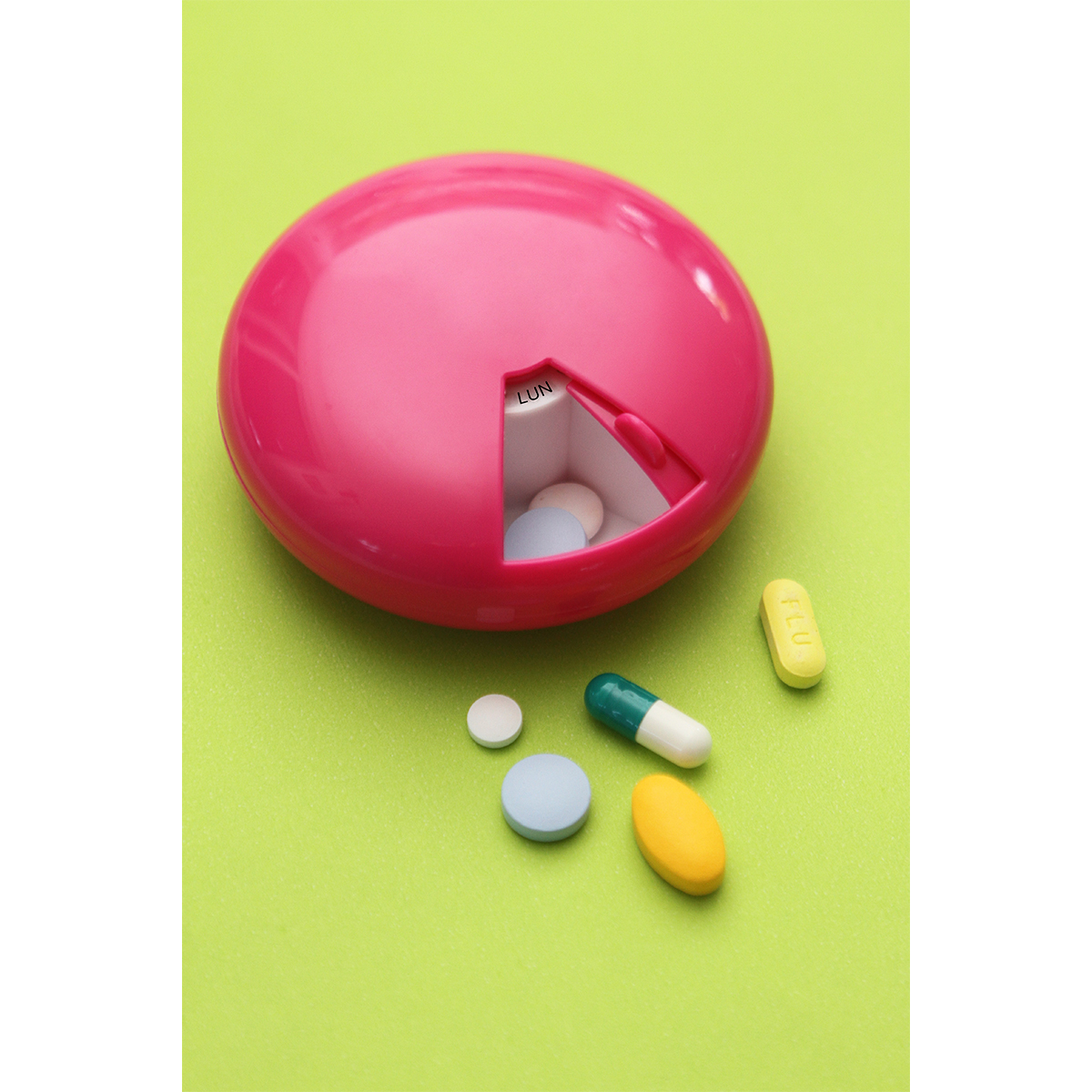 Pastillero redondo. - Pastillero redondo de plástico con cortador de acero. Ide...