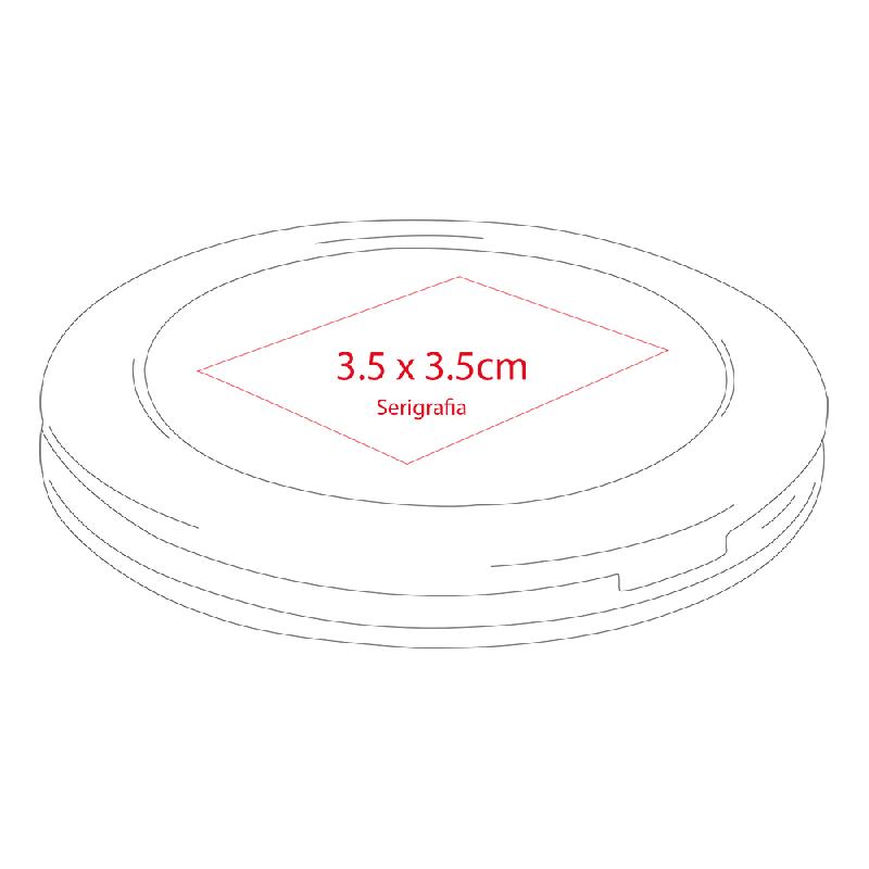 Espejo dual con acabado metálico, una de las caras con aumento. Medidas: 7.5 cm Diametro x 1 cm Material: Plástico.