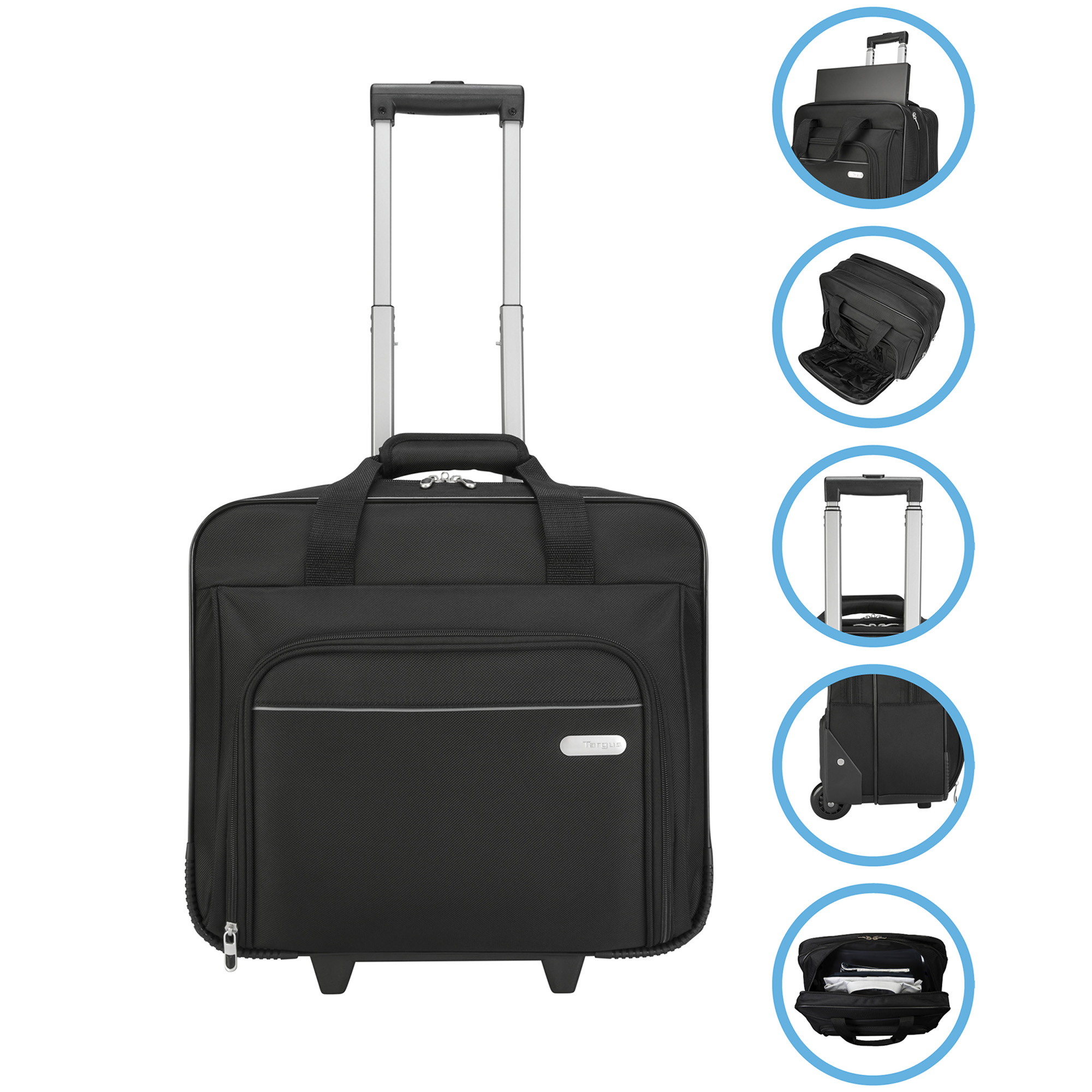 ROLLING LAPTOP CASE Maletín con ruedas y 3 compartimentos: 1 compartimento principal con porta lap top, un compartimento trasero y uno frontal con cierres y bolsas internas. Incluye asas en la parte superior y asa retráctil metálica.
