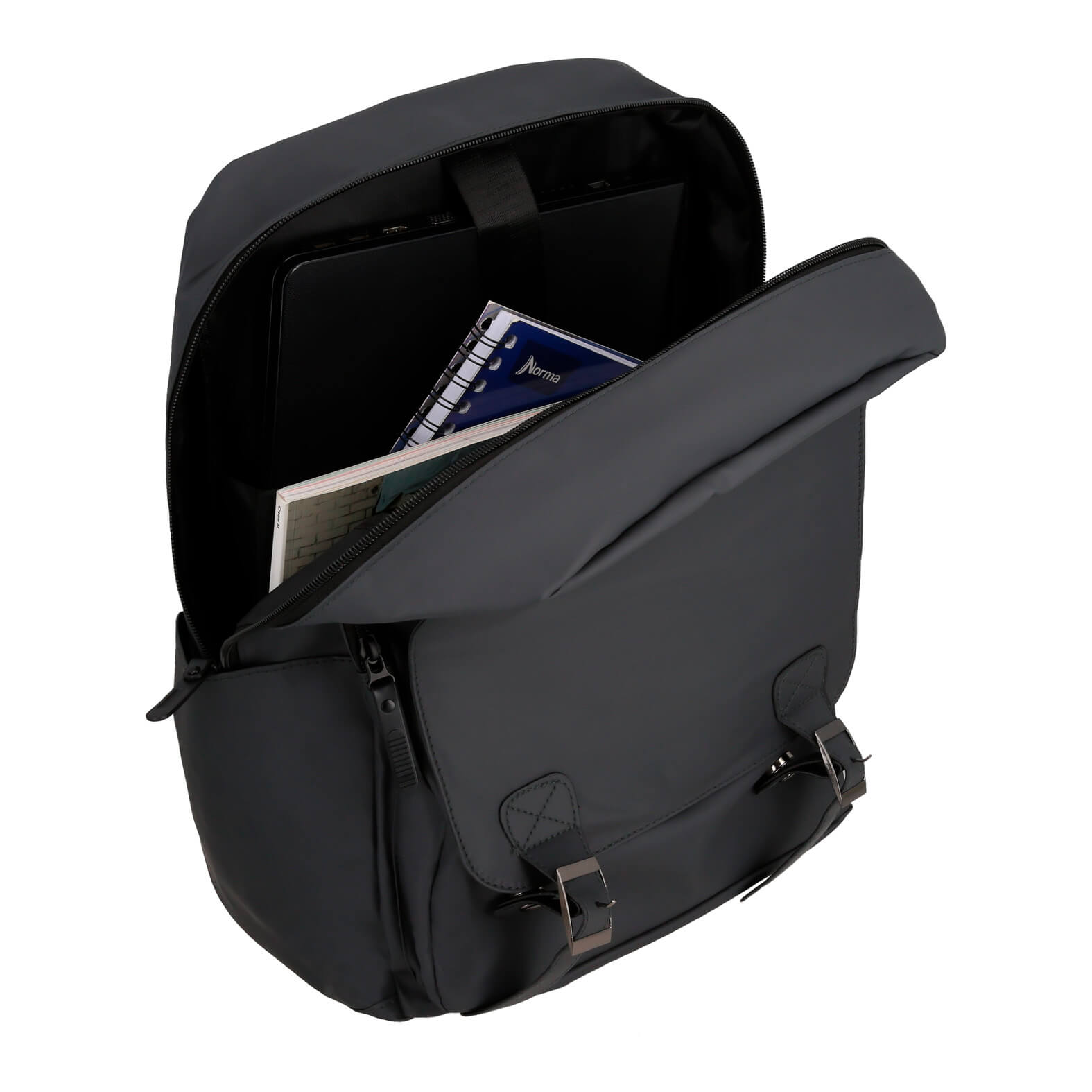 TANSEN Mochila de 1 compartimento principal con porta laptop, 1 compartimento frontal con cierre y broches magnéticos, además de bolsas laterales, asas acolchadas, carry on y asa superior.