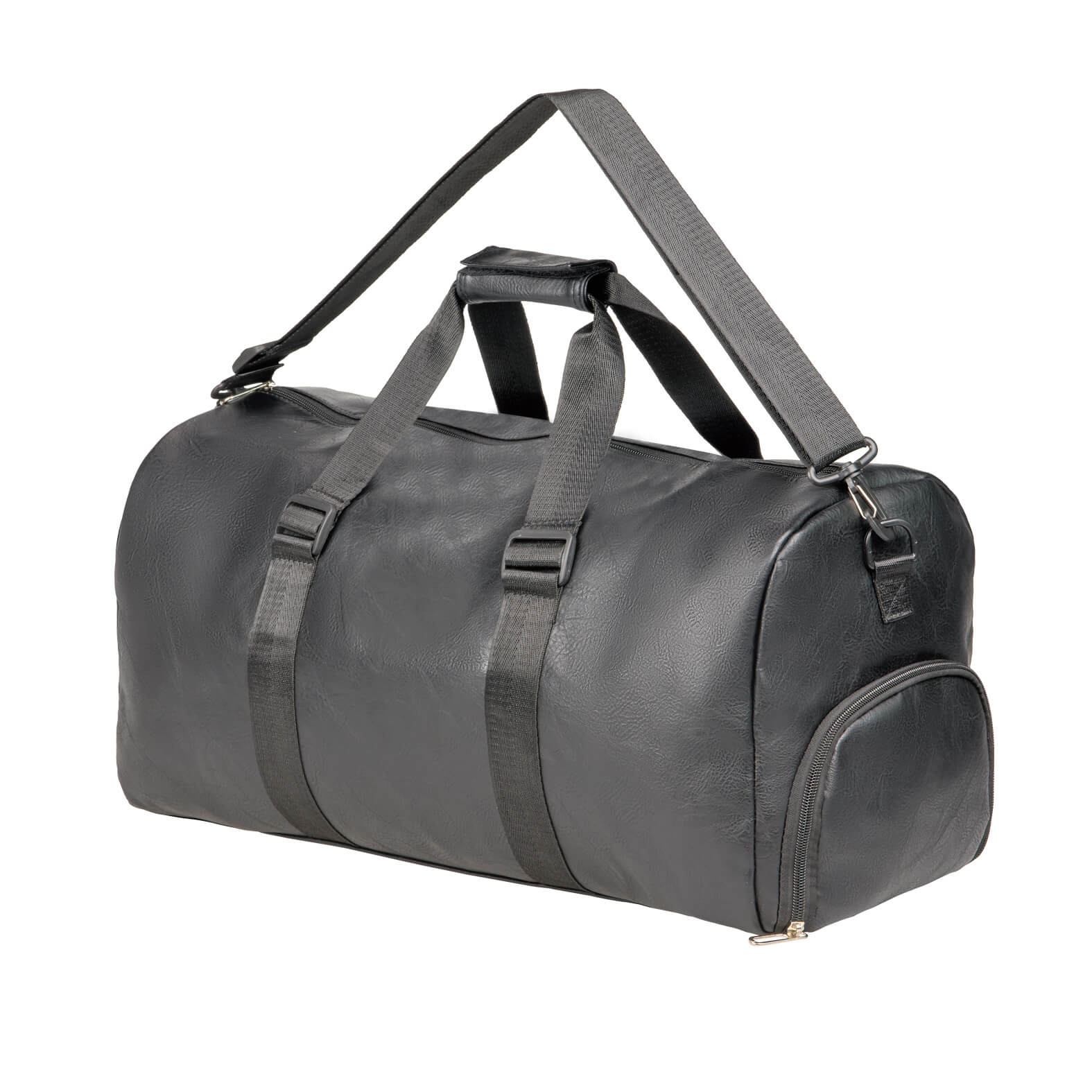 DAVOS Maleta deportiva de curpiel con compartimento principal, dos bolsillos internos, asas superiores con velcro, zapatera y correa ajustable.
