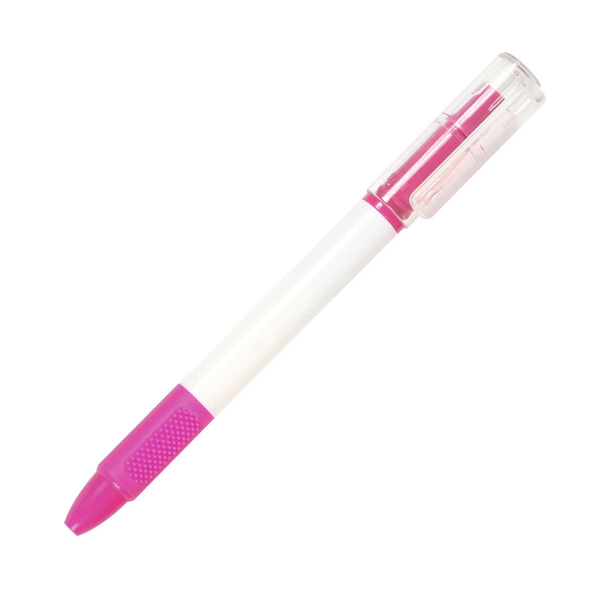 Bolígrafo Skikda. - Bolígrafo 2 en 1 con acción giratoria y marca textos con tapa traslúcida. Barril hecho de plástico reciclado ABS con detalle en goma con textura para mejor uso. Tinta de escritura negra y el marca textos hace juego según el color exterior. Combina funcionalidad y versatilidad en un solo producto.