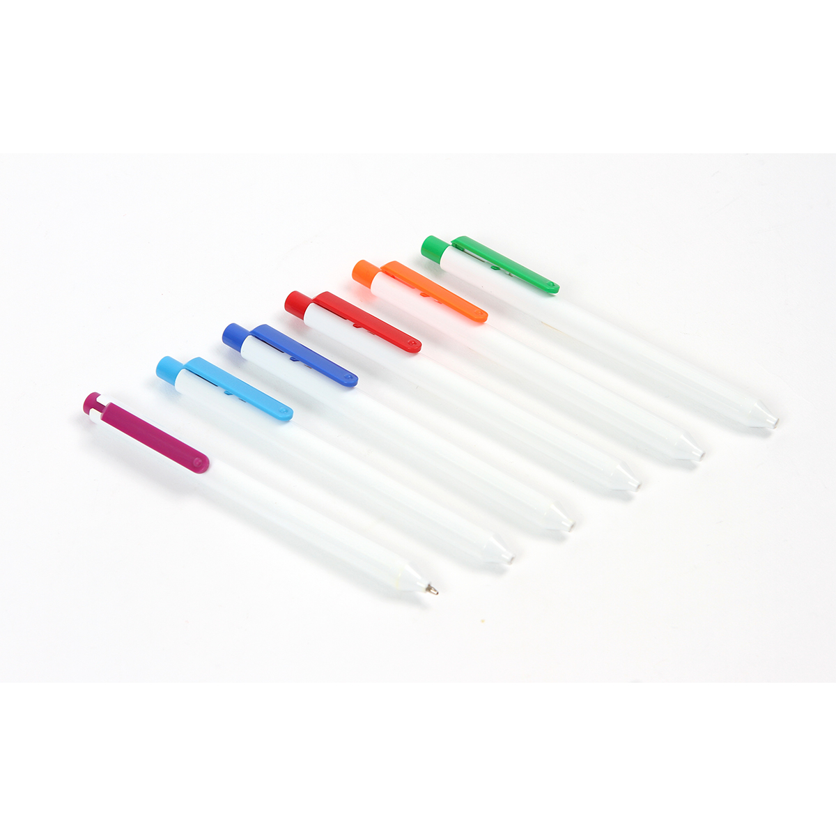 Bolígrafo Vaiges. - Bolígrafo con barril fabricado en plástico ABS color blanco y clip en diferentes colores a elegir, mecanismo de botón. Tinta de escritura negra.
