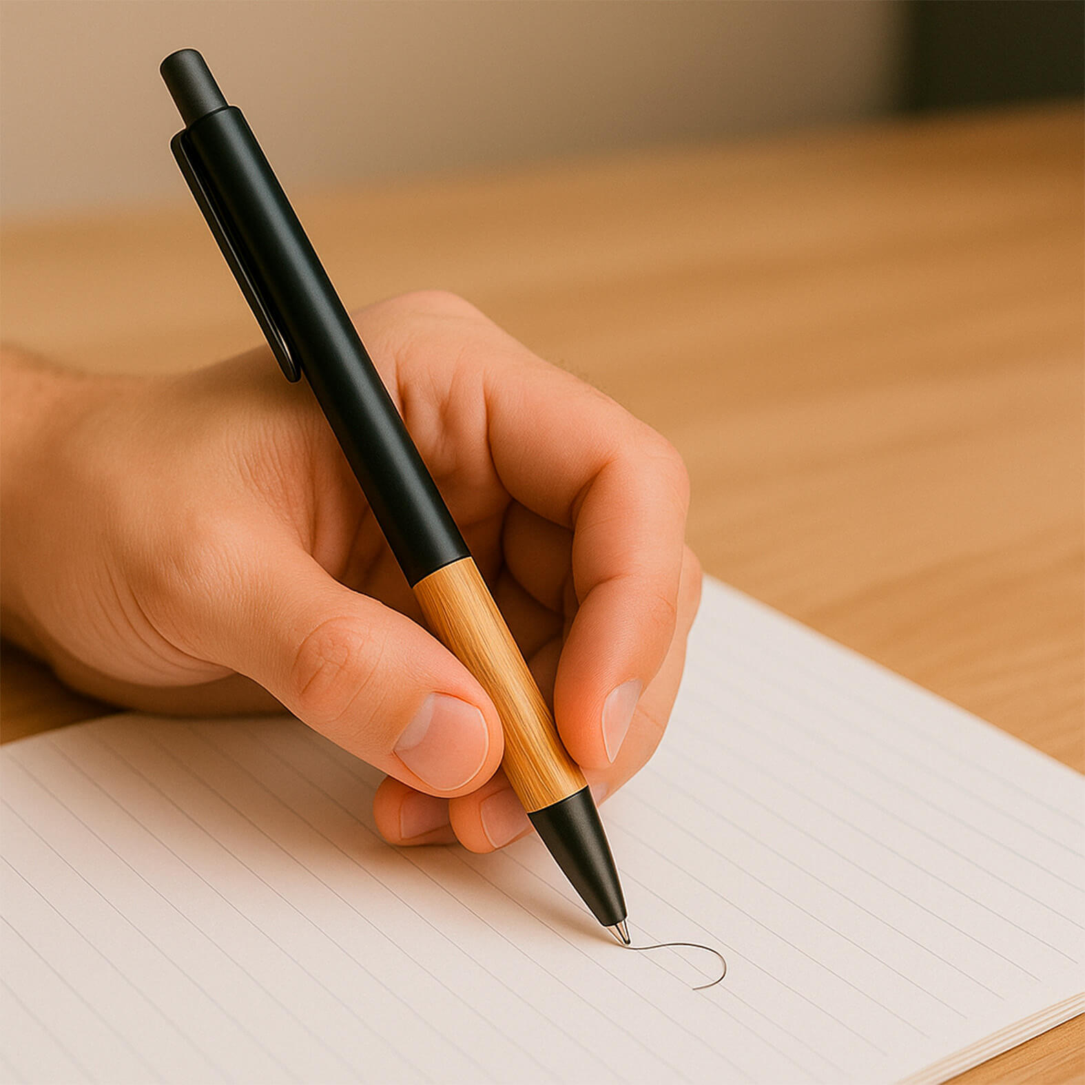 ZACI Bolígrafo plástico con grip de bambú, clip y mecanismo de click.