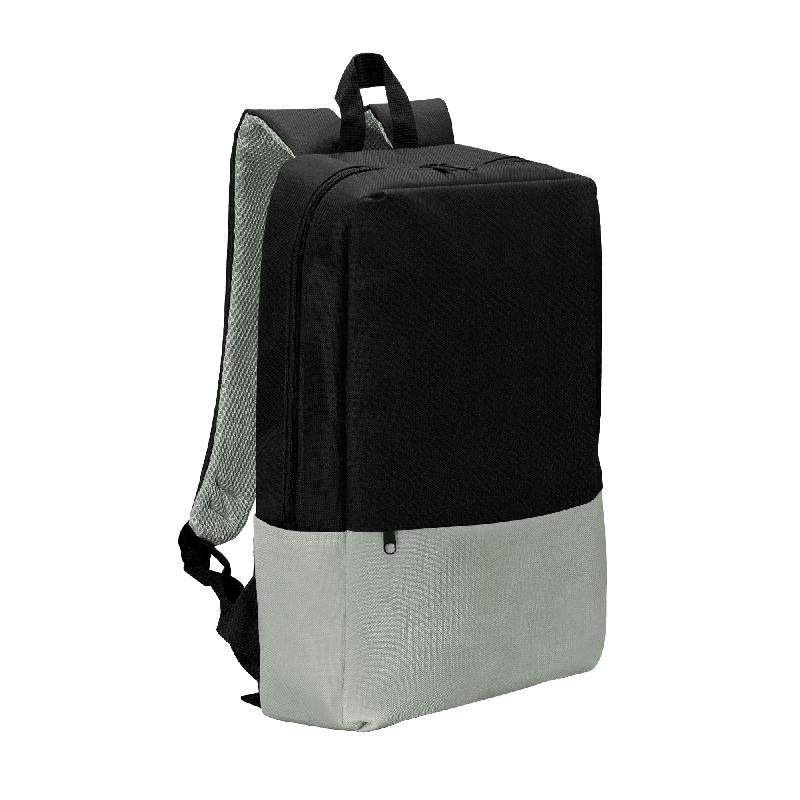 MOCHILA "MERIDIAN" Mochila urbana porta notebook de hasta 15 pulgadas. Bolsillo frontal con cierre horizontal y dos bolsillos laterales. Compartimento principal con bolsillo acolchado para proteger la notebook. Correas ajustables y espalda acolchada. Tiradores de cierres plásticos.