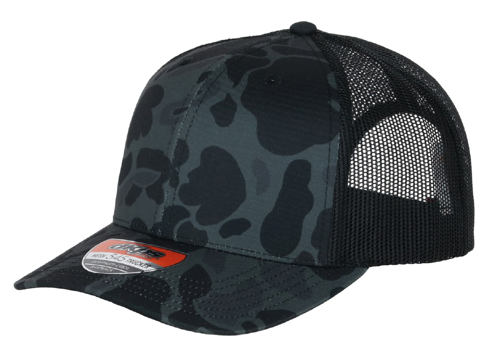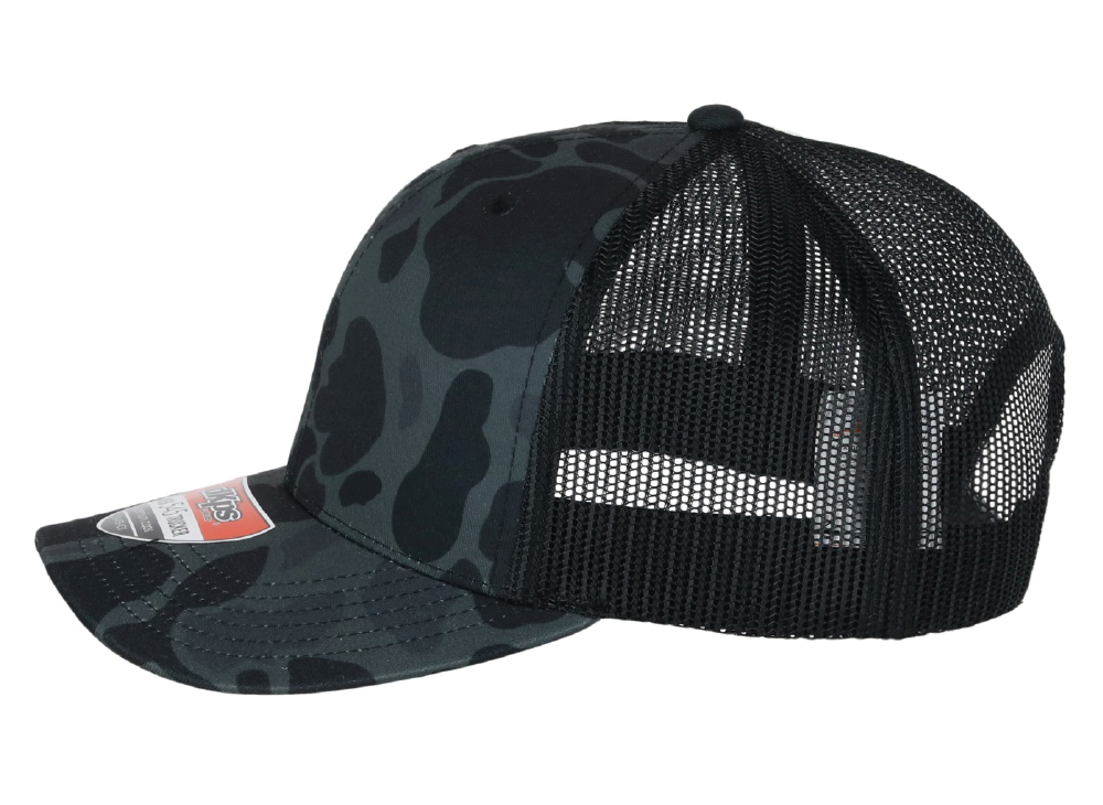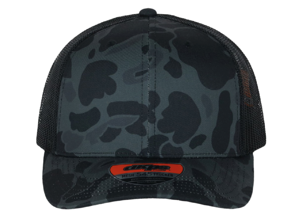 DKPS #545 GORRA MESH CAMO/NEGRO, ALG 50% POL 50%, MALLA PREMIUM 6 GAJOS, AJUSTE PLASTICO