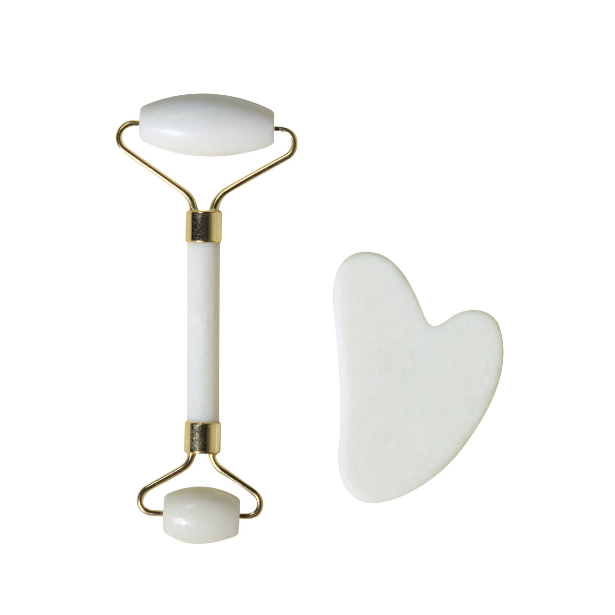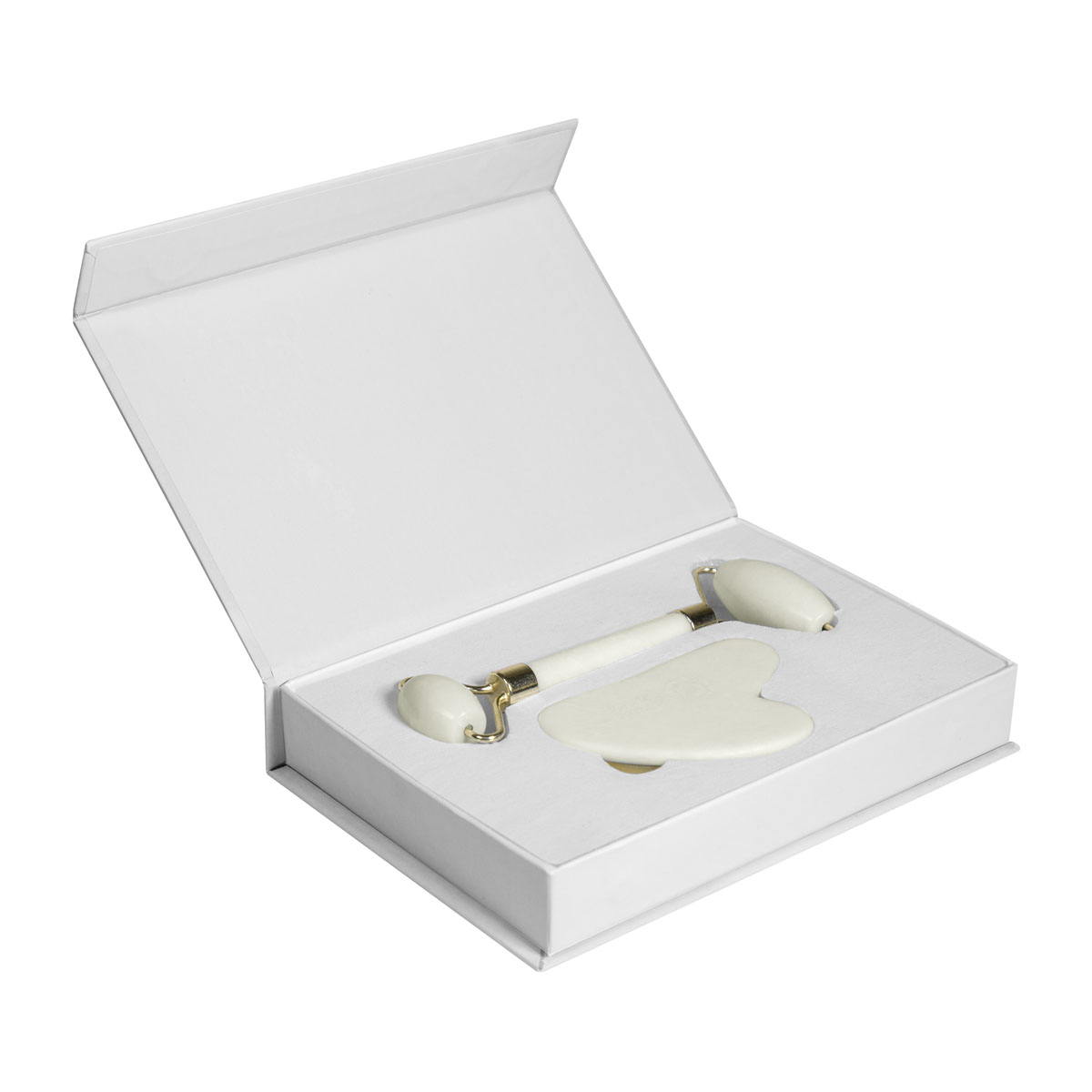SET MASAJEADOR HELENA - Set masajeador facial. Incluye 1 rodillo para estimular y masajear la piel, para mejorar la circulación sanguínea y reducir la hinchazón facial. Piedra facial Gua Sha, para aplicar presión y realizar movimientos de deslizamiento sobre la piel. Ayuda a aliviar la tensión muscular y a mejorar la absorción de productos para el cuidado de la piel. Caja individual con cierre imantado.