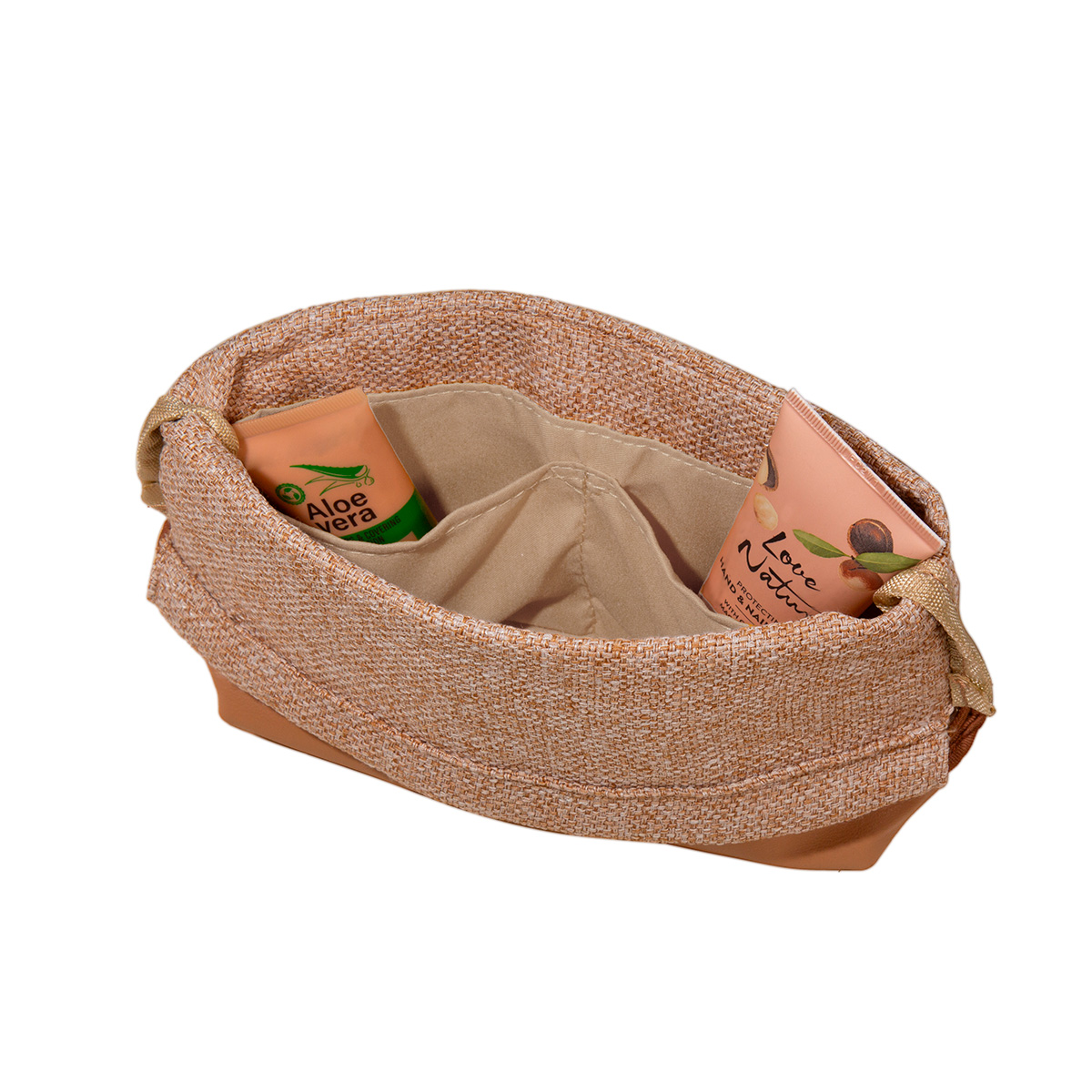 COSMETIQUERA ISABELLA - Cosmetiquera versátil con cierre con jareta. En su compartimento principal encontrarás dos prácticos bolsillos organizadores para mantener tus productos de belleza en orden.