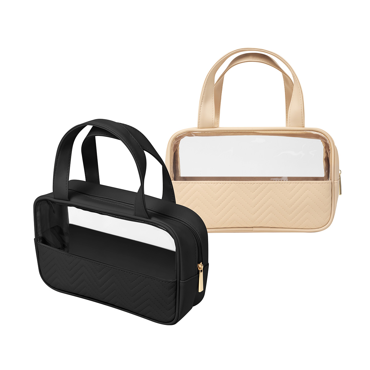 NECESER ISARA - Neceser de curpiel con vista frontal en mica de PVC. Permite ver al interior y sus asas superiores ofrecen mayor comodidad en su traslado. Ideal para organizar productos de belleza, cuidado personal o viaje.