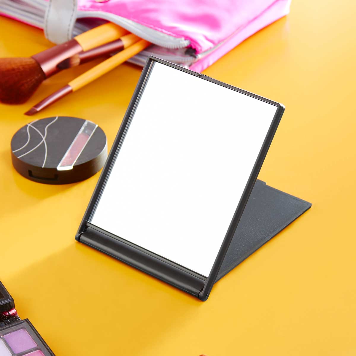 ESPEJO LARISA - Espejo rectangular de bolsillo. La tapa sirve como base.