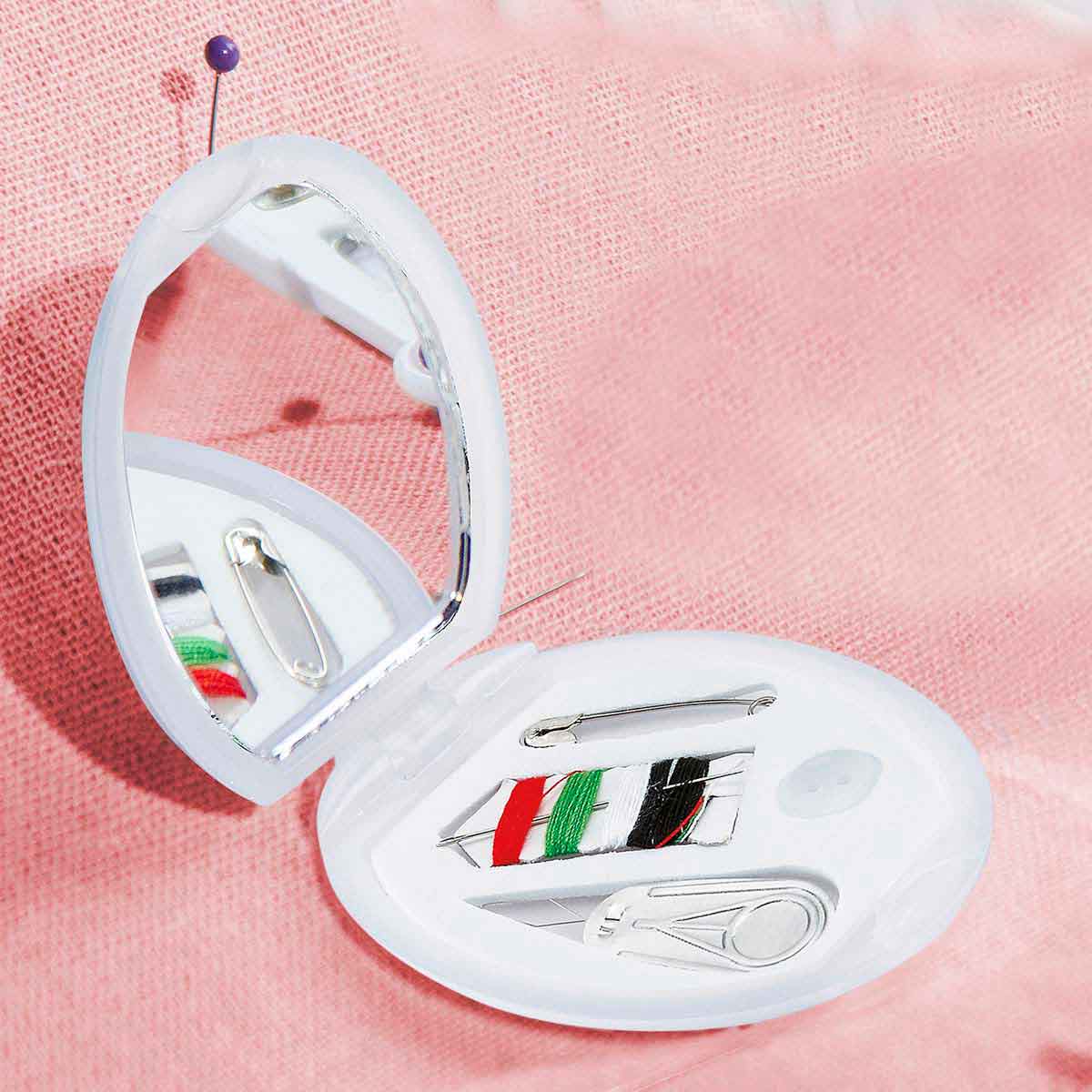 COSTURERO OVALADO AURA - Incluye ensartador de aguja, botón, hilo, aguja, seguro y estuche con espejo.