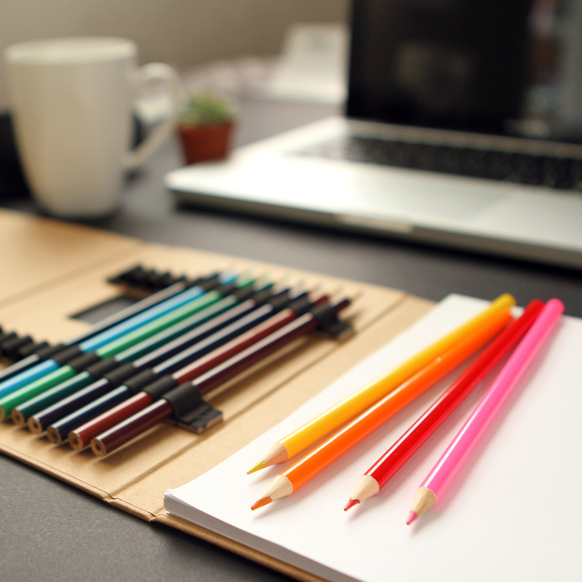 Set ecológico Goa. - Set ecológico de pastas rígidas con suaje al frente fabricado en cartón con 12 lápices de colores, resortes sujetadores y block con 50 hojas blancas.