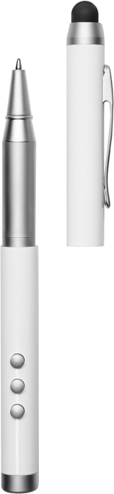 PRESENTADOR TOUCH Rollerball y puntero laser para presentaciones con punta touch en la tapa. Transmisor USB para conexión remota. Funciona con tres pilas botón incluidas. Presentación en caja de regalo.