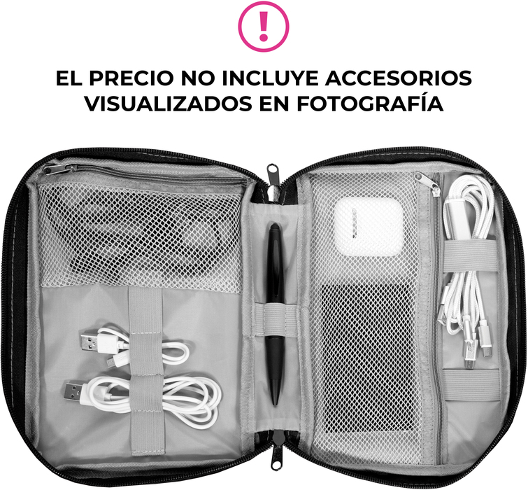 ORGANIZADOR DE CABLES "FILLMORE" Organizador para cables y accesorios. Cuenta con dos bolsillos de red con cierre. 4 elásticos que permiten enrollar y guardar los cables, 1 elástico porta bolígrafo y 2 elásticos amplios. NO INCLUYE ACCESORIOS.