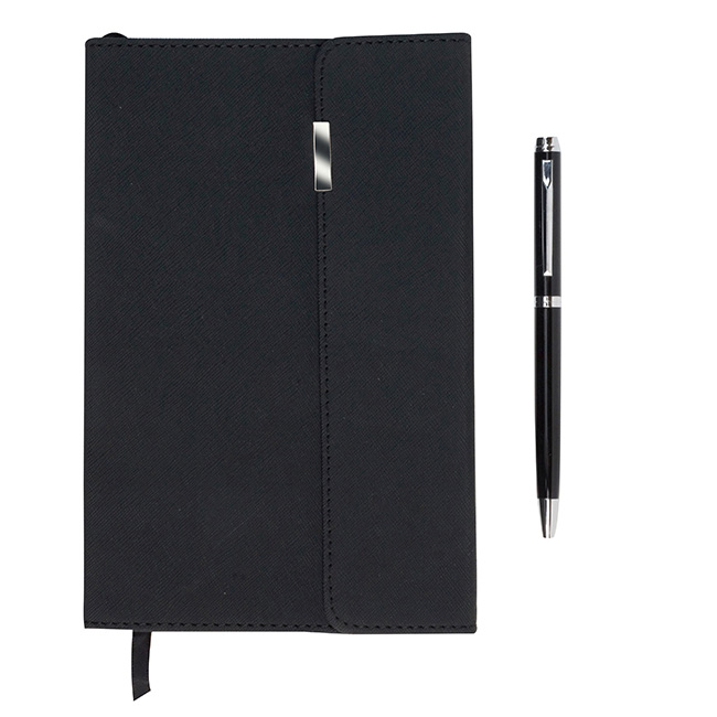 Set Estambul Set Estambul Incluye Bolígrafo y Libreta con cierre en ceja magnético, placa metálica para personalizar y cinta divisoria. Libreta con aprox. 80 hojas rayadas.