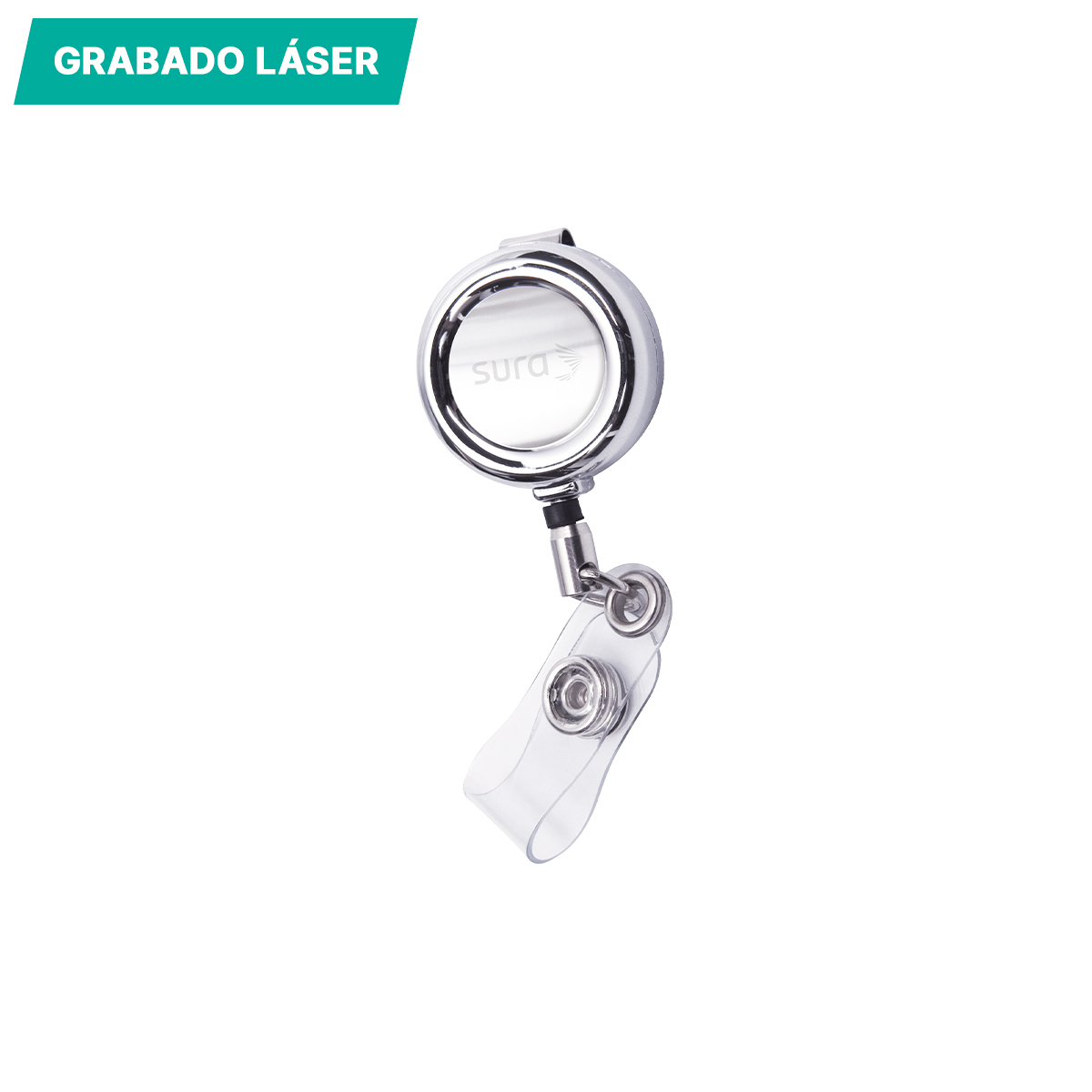 Porta gafete metálico. - Porta gafete metálico retráctil. Incluye caja de cartón individual.