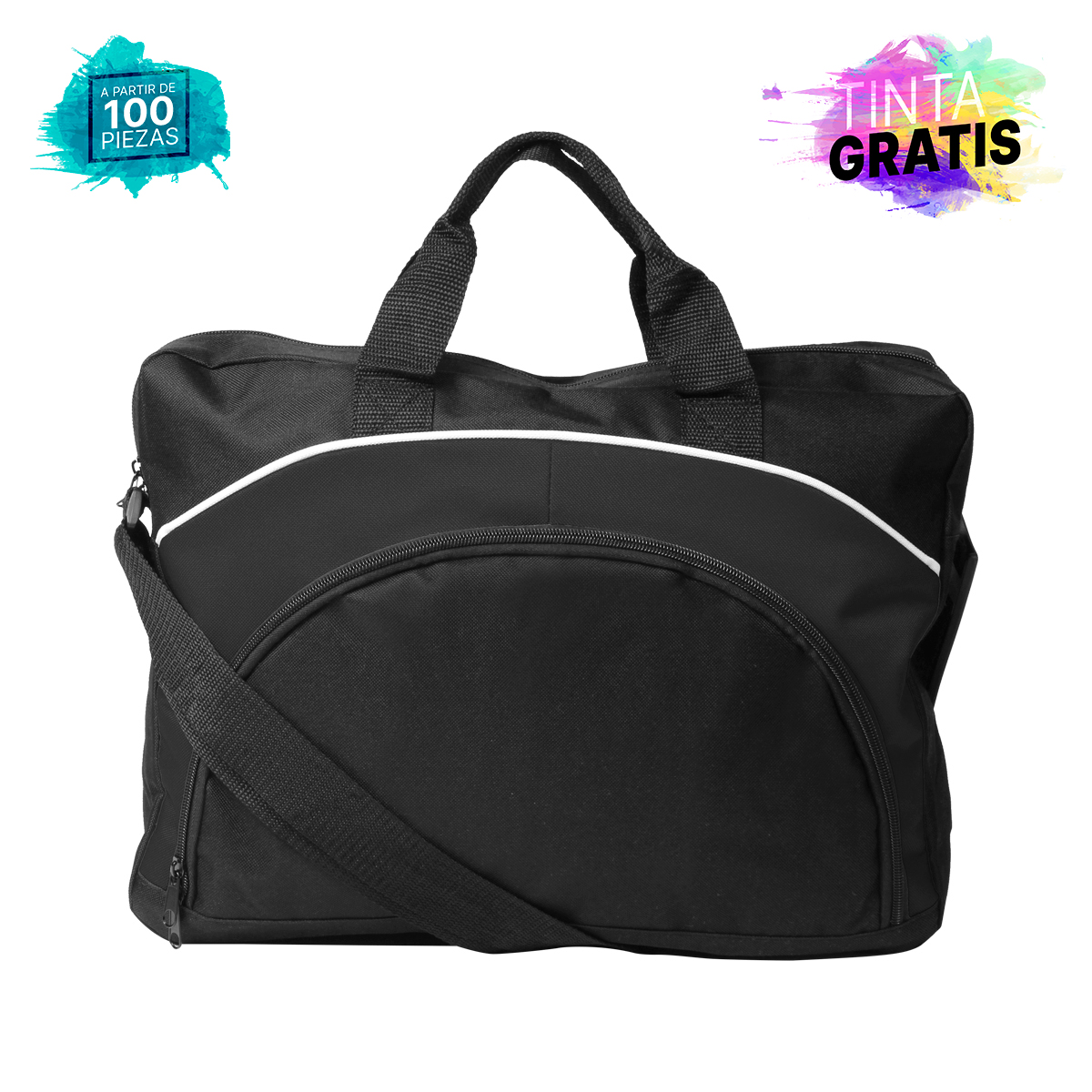 Portafolio Montreal. - Portafolio ejecutivo fabricado en poliéster, lo que le garantiza durabilidad y resistencia. El portafolio cuenta con un cierre al frente que asegura el contenido y proporciona un acceso rápido y conveniente a los documentos almacenados en su interior. En el interior del portafolio encontrará varios compartimentos que te permiten separar y proteger tus pertenencias, facilitando su acceso y evitando posibles daños o rayos, también cuenta con asas y una correa de hombro ajustable, lo que te brinda opciones de transporte versátiles y cómodas.