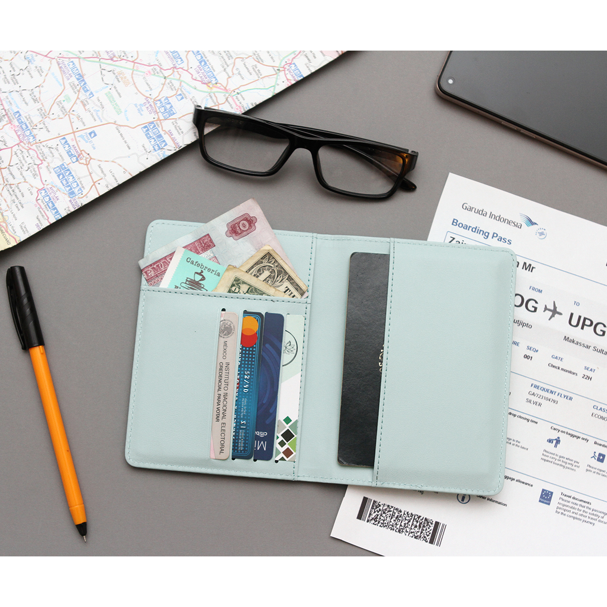 Porta pasaporte Narbona. - Porta pasaporte fabricado en curpiel, con compartimiento para 4 tarjetas, efectivo u otros papeles. Cuenta con una banda elástica en la parte inferior de este para cerrarlo de manera fácil y eficaz.El Porta pasaporte Narbona es un elegante y funcional accesorio diseñado para proteger y organizar tus documentos de viaje de forma segura y conveniente.