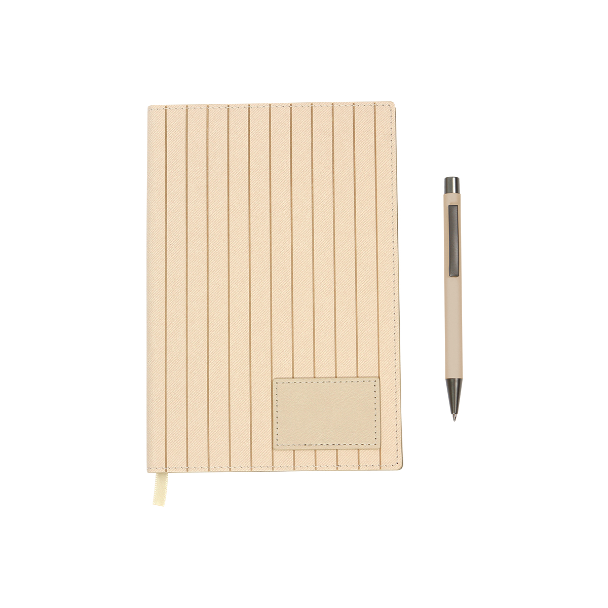 Set Mauron. - Set ejecutivo, incluye bolígrafo y libreta tamaño A5 con cubierta fabricada en PU (curpiel) con una etiqueta rectangular cosida en la esquina inferior derecha. Interior 135 hojas blancas de 80g. Incluye caja de regalo color negro.