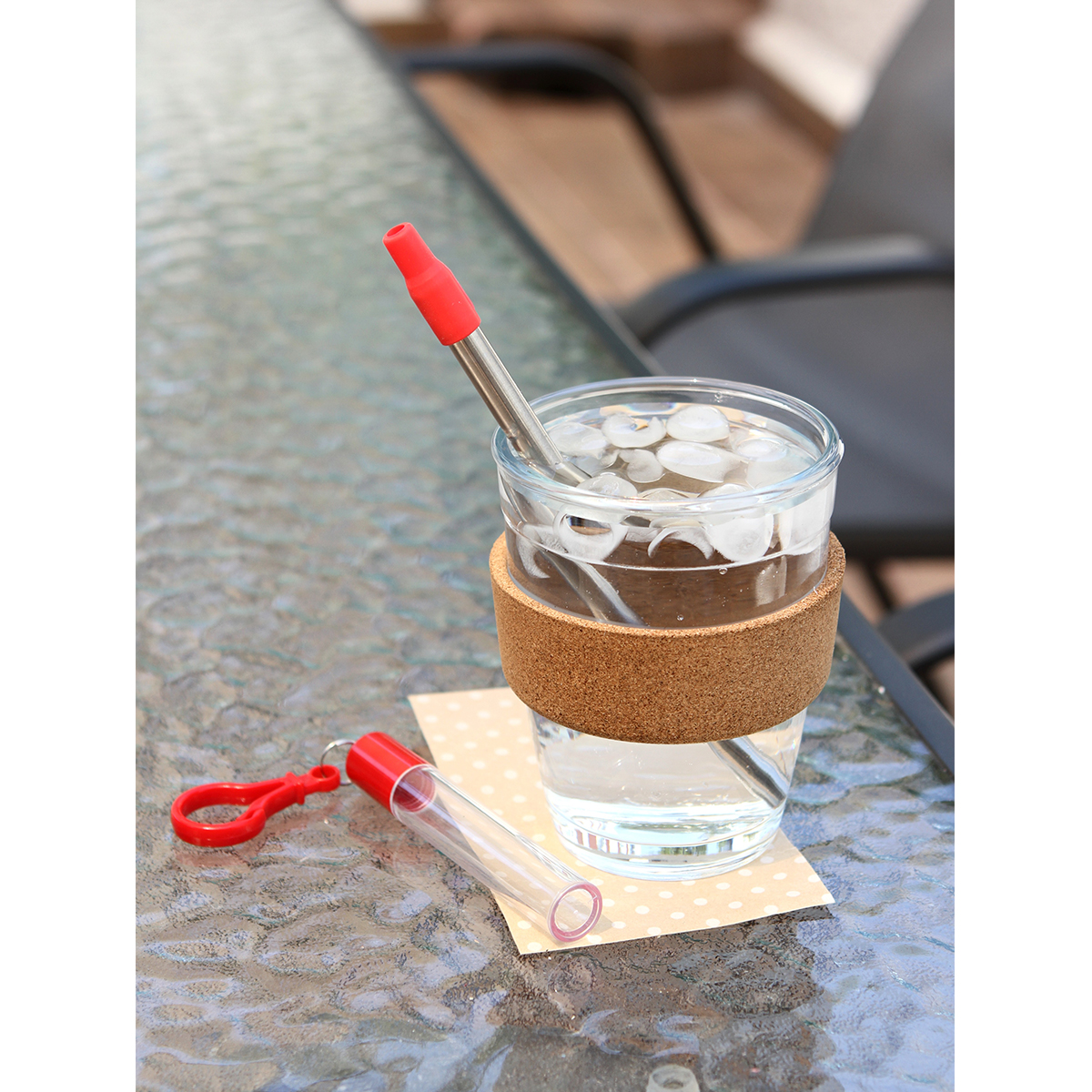 Popote metálico. - Popote retráctil reutilizable de acero inoxidable, contiene cepillo para fácil limpieza y practico estuche de acrílico con arnés para llevarlo a todas partes, se puede grabar en el popote y cuenta con un área amplia para impresión en el estuche. Son ideales para viajar y responsables con el medio ambiente.