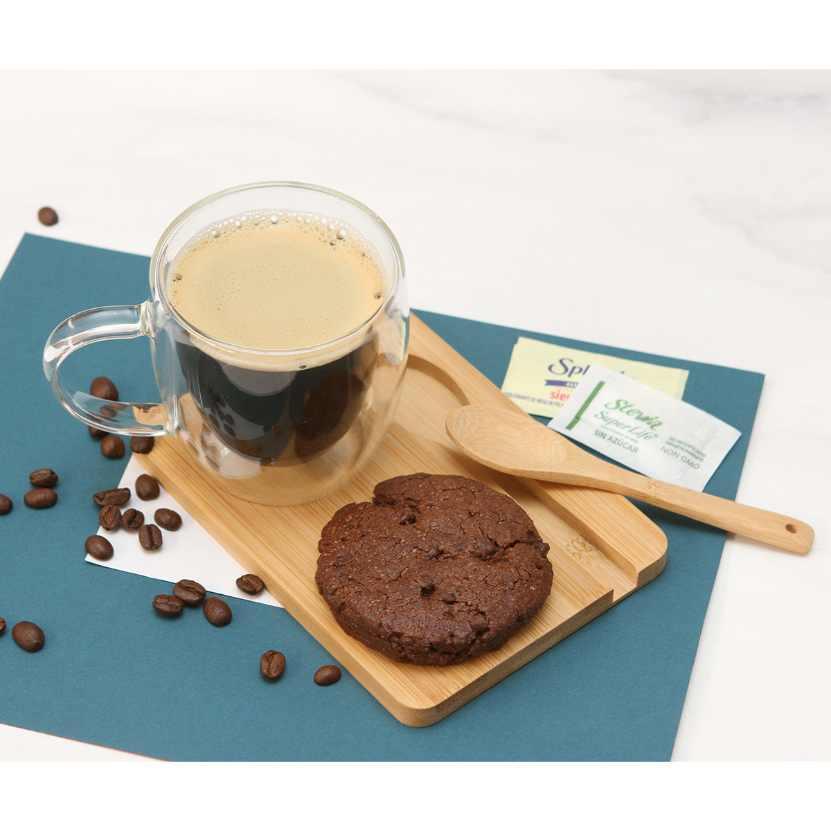 Juego Marotta. - Juego de té, incluye taza fabricada en borosilicato, con base y cuchara fabricadas en madera de bambú barnizada. Capacidad de 250 ml.